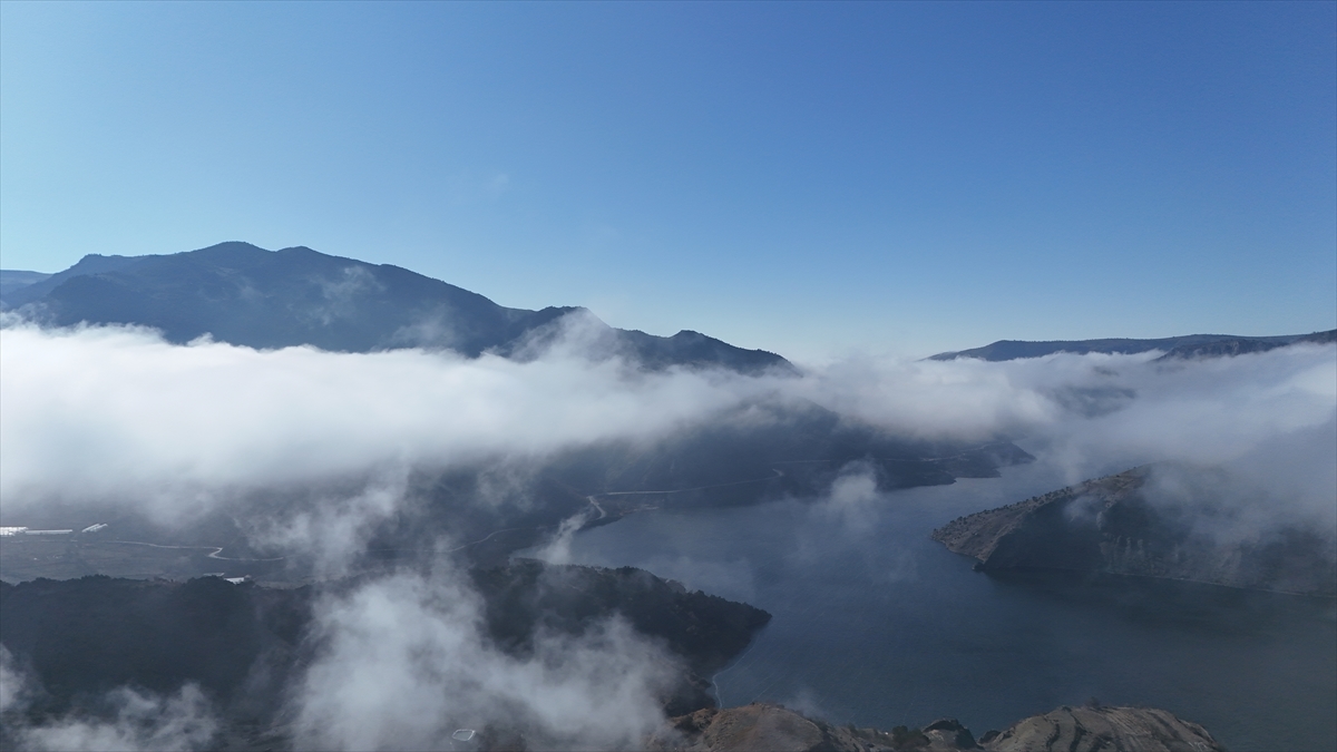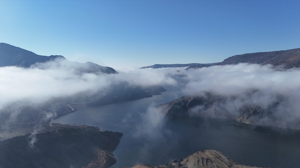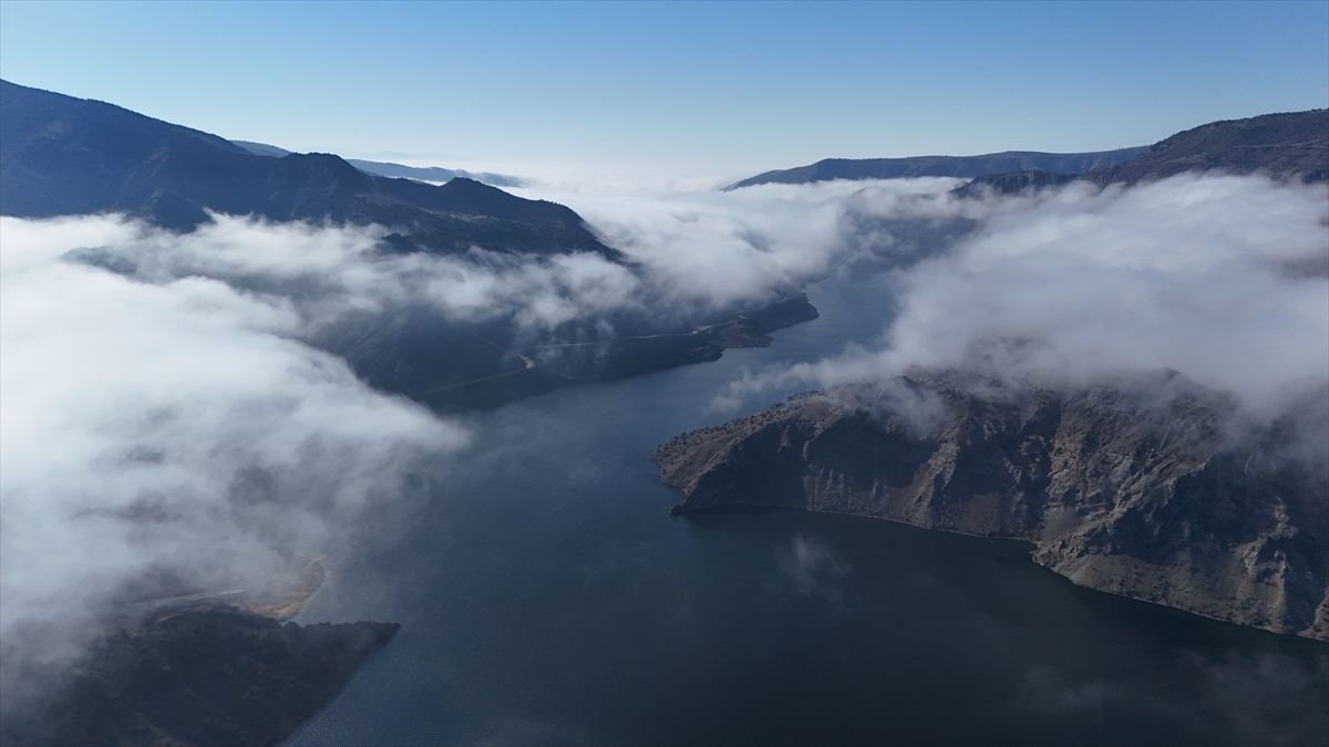 Yaklaşık 661 milyon metreküp su hacmine sahip baraj gölü, üzerini kaplayan sis bulutlarıyla güzel görüntüler oluşturdu.