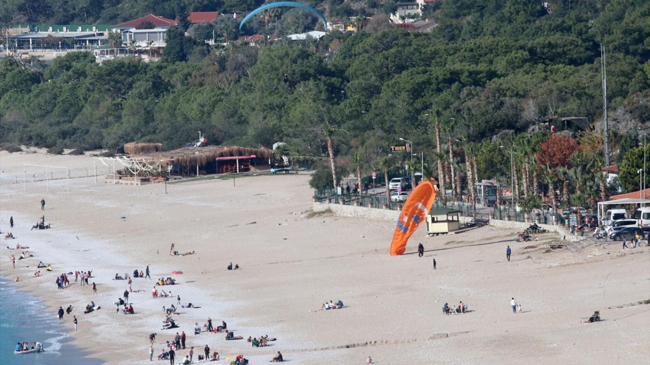Fethiye`nin dünyaca ünlü Ölüdeniz sahilinde de sıcak hava dolayısıyla yoğunluk oluştu.