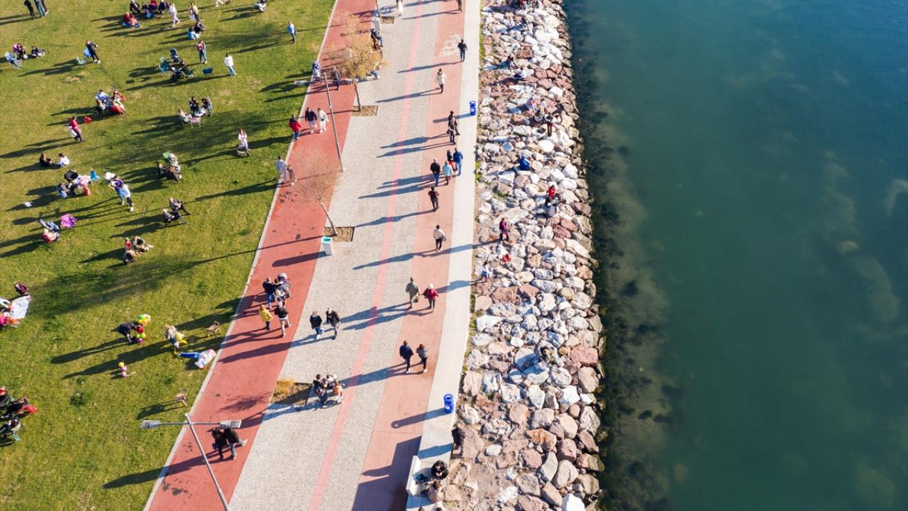 Bazı vatandaşlar güneşlenmeyi tercih ederken, bazıları da sahil bandında yürüyüş yaptı, bisiklete bindi.