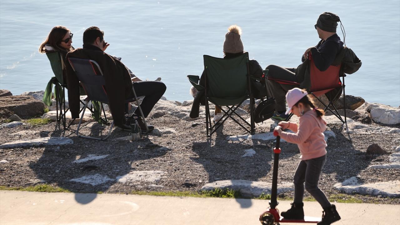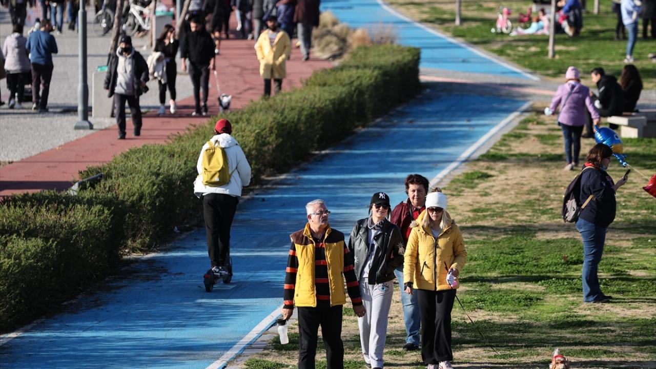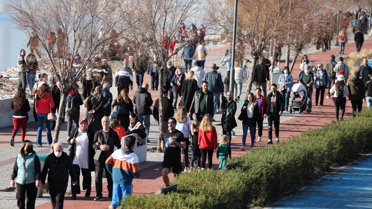 Yılın ilk günlerinde güneşin yüzünü göstermesinden faydalanan İzmirliler, özellikle sahil bandındaki alanlara ilgi gösterdi.