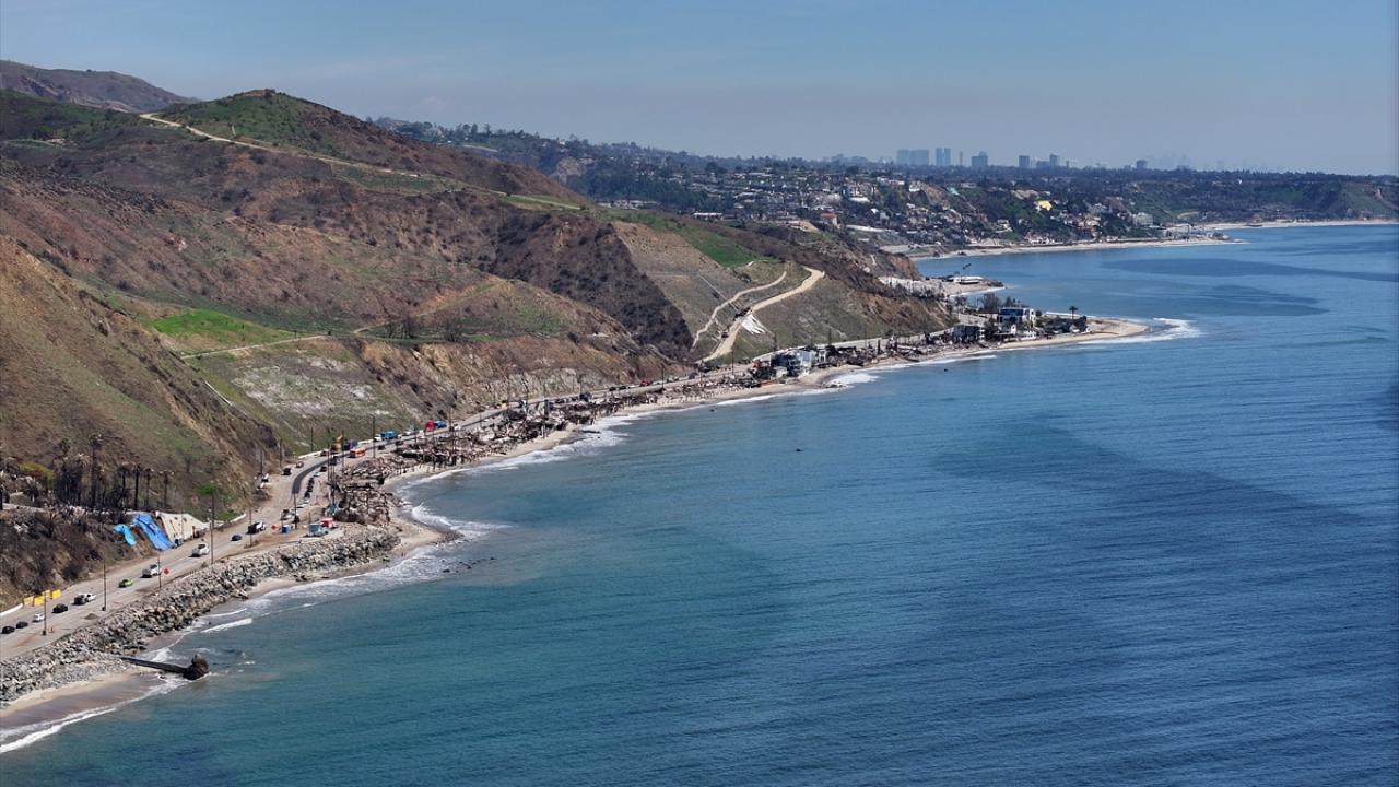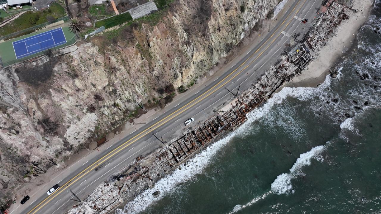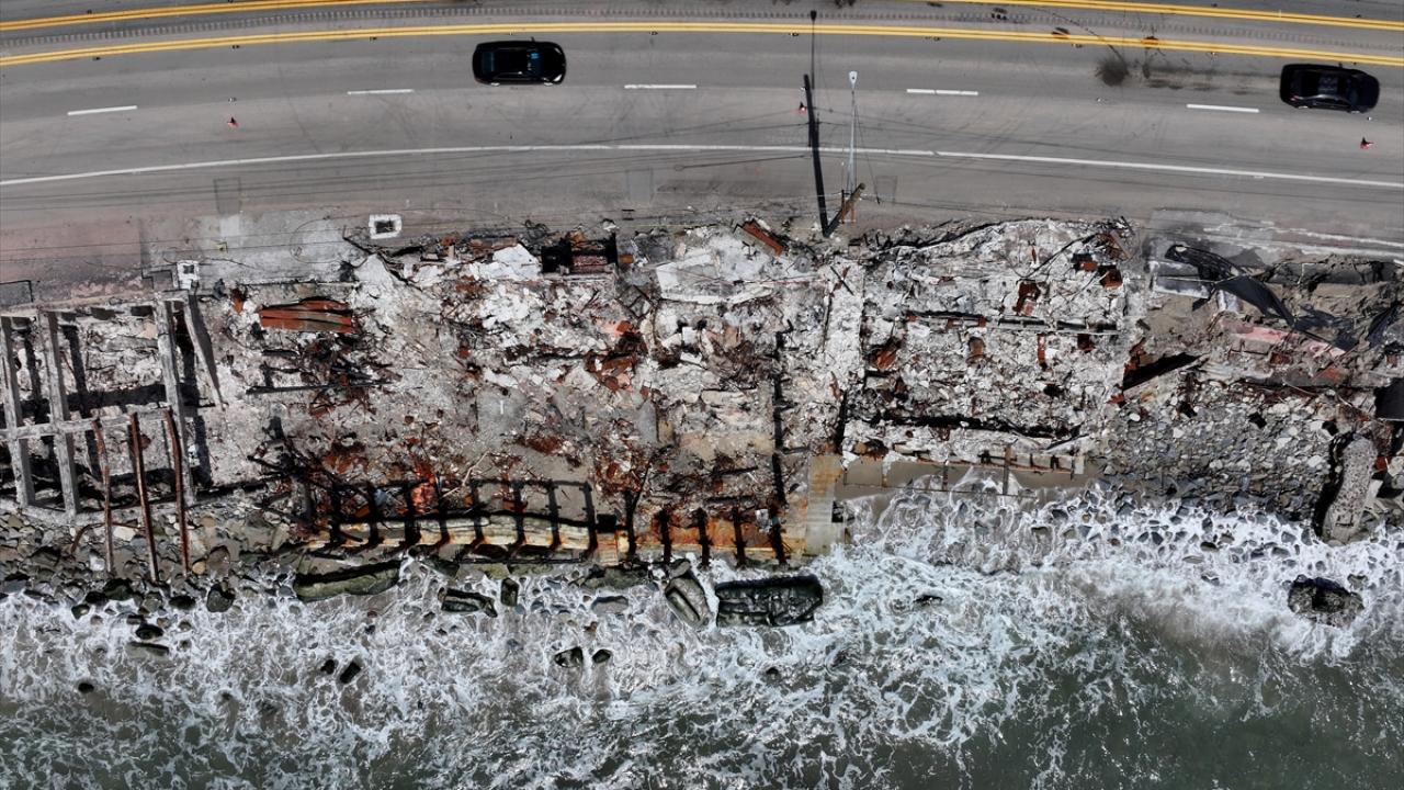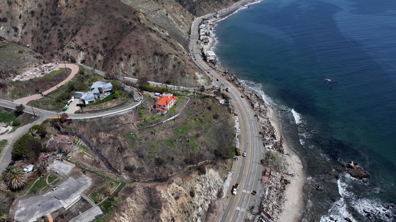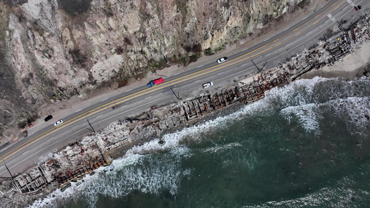2025 yılının Ocak ayında meydana gelen büyük orman yangınlarının ardından, Los Angeles, California’daki Malibu’nun Pasifik kıyısında yanan evler ve yapılar görüntülendi.