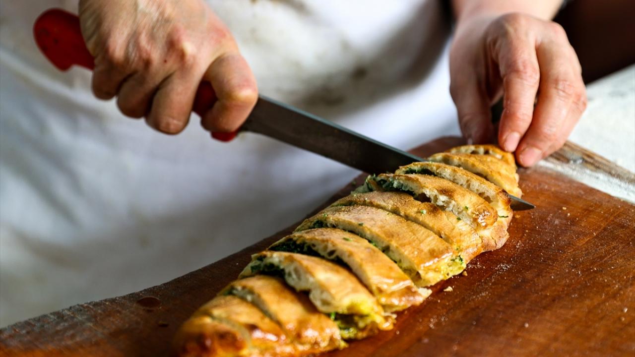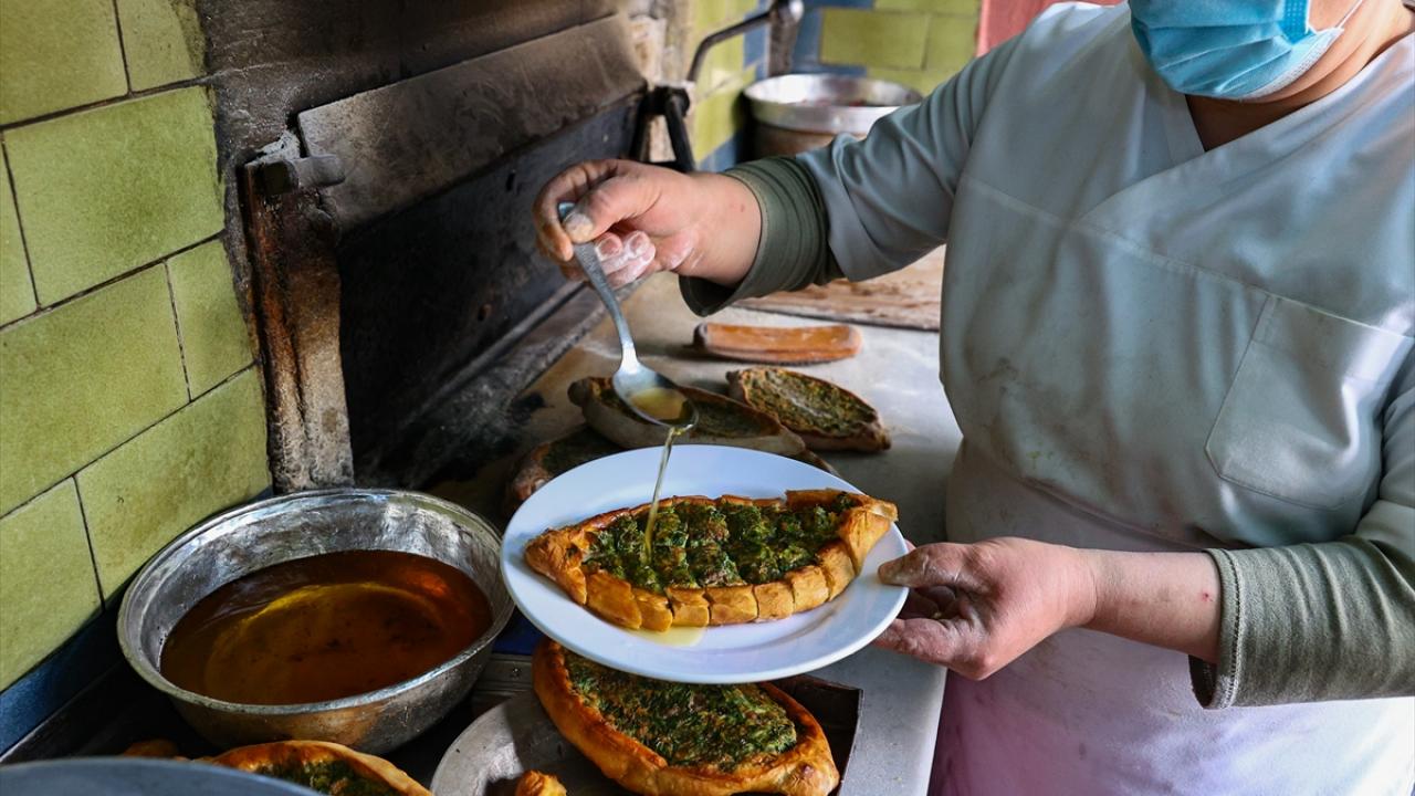 İzmir'in Ödemiş ilçesinde maydanoz, süt, yumurta, şeker, kavrulmuş kıyma karışımından oluşan özel harçla yapılan ve 6 yıl önce coğrafi işaret belgesi alan "Töngül pide", 128 yıldır aynı mekanda kahvaltı ve öğle yemeklerinde sofraları süslüyor.