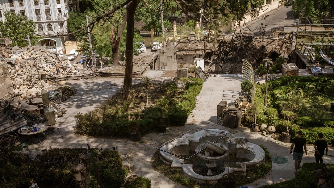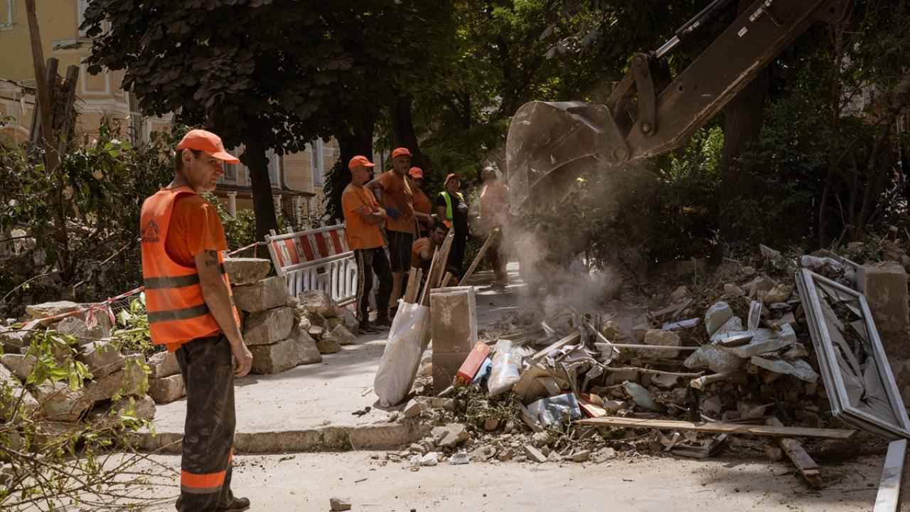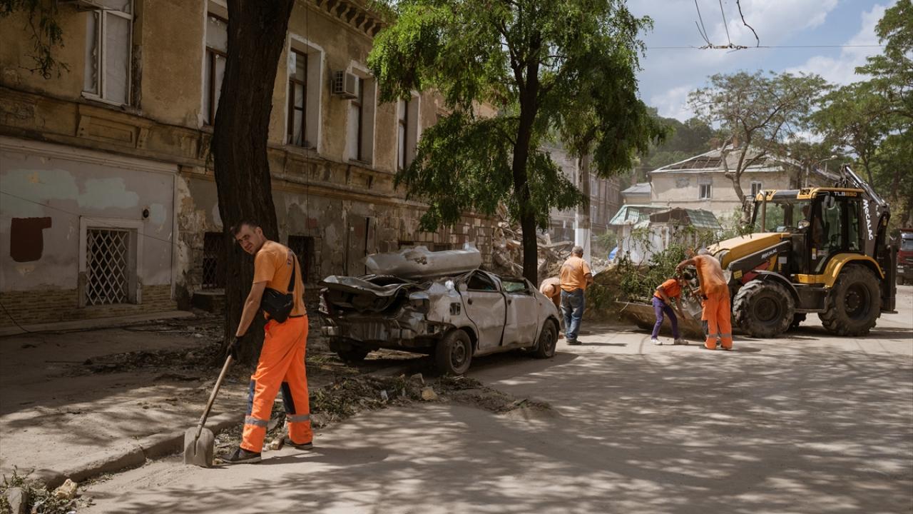 UNESCO tarafından Dünya Mirası olarak sınıflandırılan Odesa şehir merkezinde hasar gören binaların enkazını yetkililer ve gönüllüler temizlemek için ortak çaba sarf ediyor.