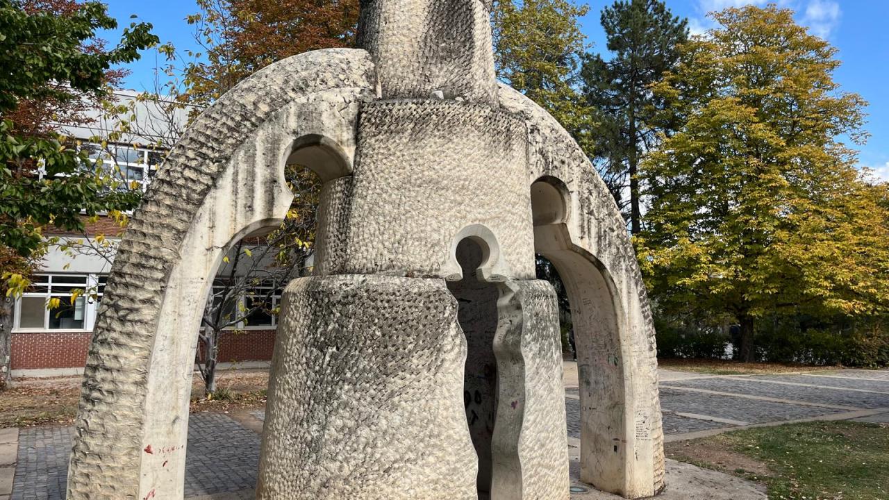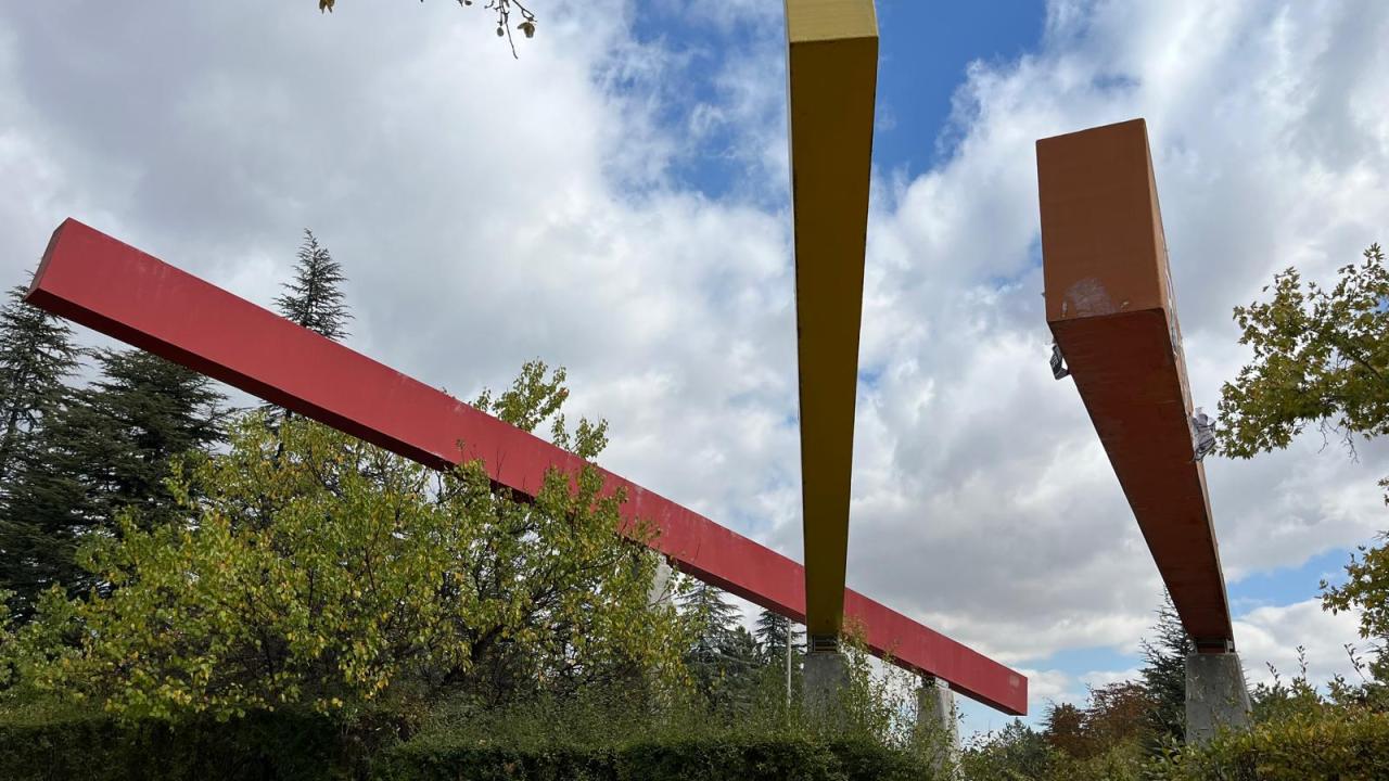 Mimarisiyle de ilgi odağı olan yerleşkede, ilginç detaylarla karşılaşmak mümkün. ODTÜ içinde her noktada Brütalist mimari etkisi var. Bu üç metalden oluşan yapı da bunun örneklerinden biri.