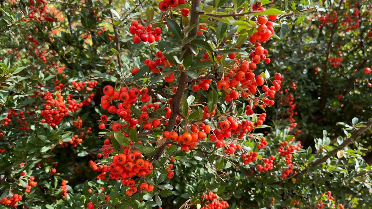 Ateş çalıları, yerleşkenin farklı yerlerinde en sık görülen bitkiler arasında.