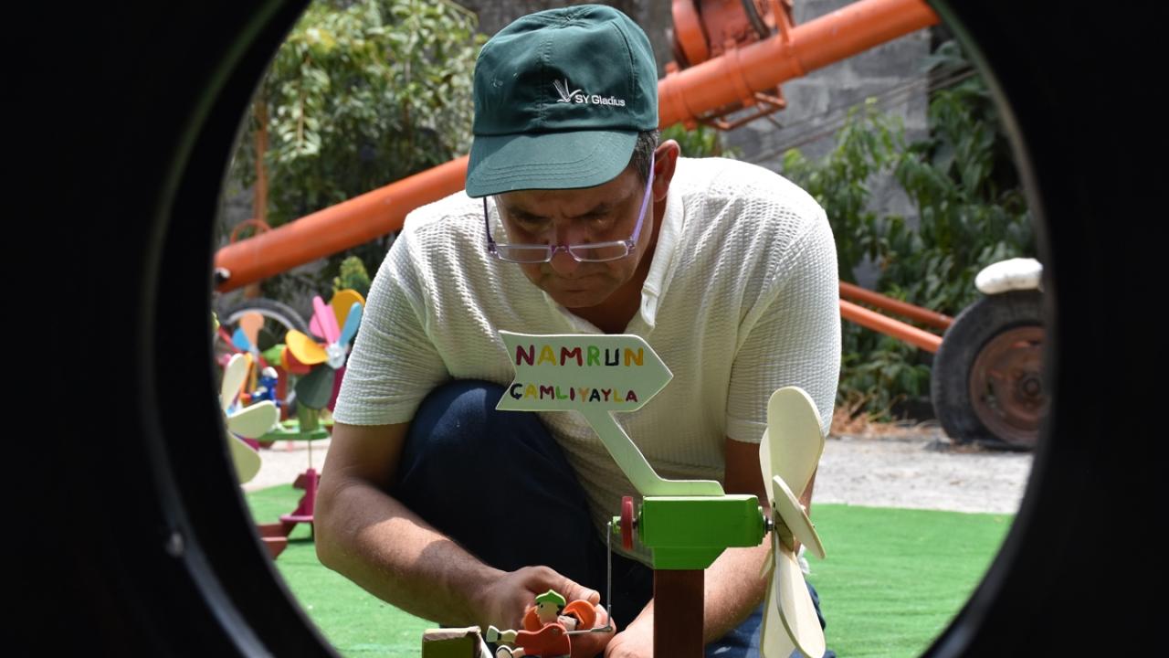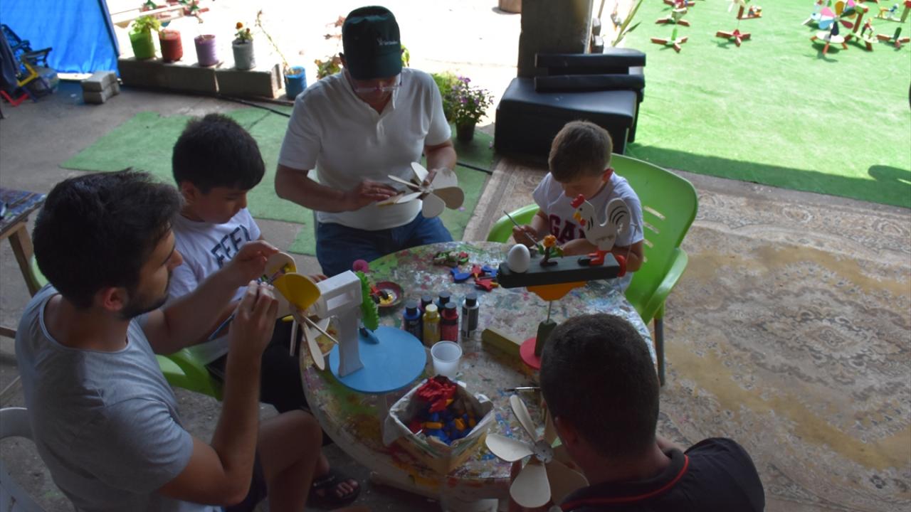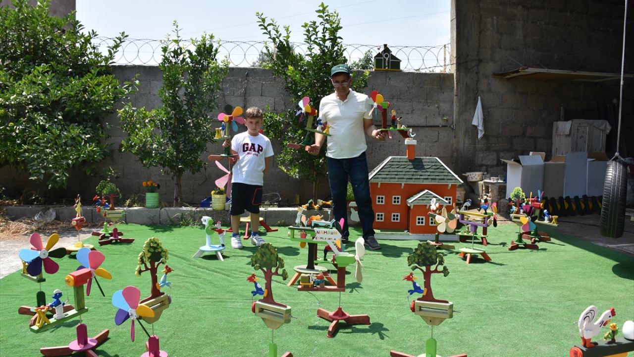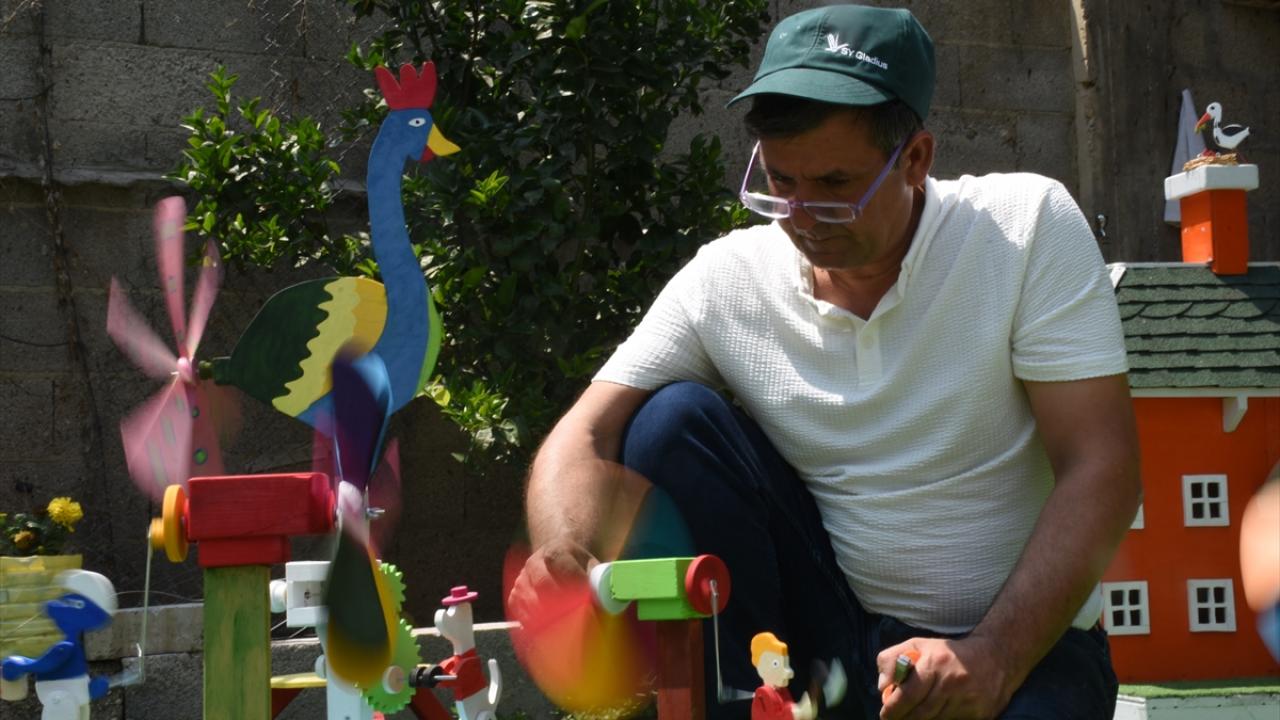 İki çocuk babası Sönmez, 4 yıl önce oğlu Ömer`i mutlu etmek için tahtadan yel değirmeni ve rüzgar gülü yaptı.