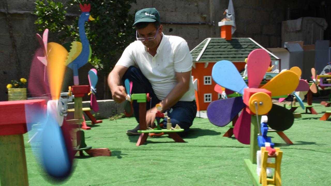 Mersin'in Tarsus ilçesinde yaşayan 50 yaşındaki Murat Sönmez'in 4 yıl önce oğlu için başladığı el yapımı ahşap oyuncak işi zamanla mesleği haline geldi.
