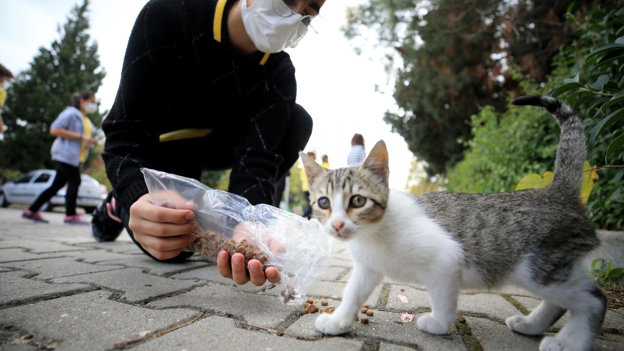 Öğrenciler harçlıklarıyla aldıkları mamalarla sokak hayvanlarını besliyor