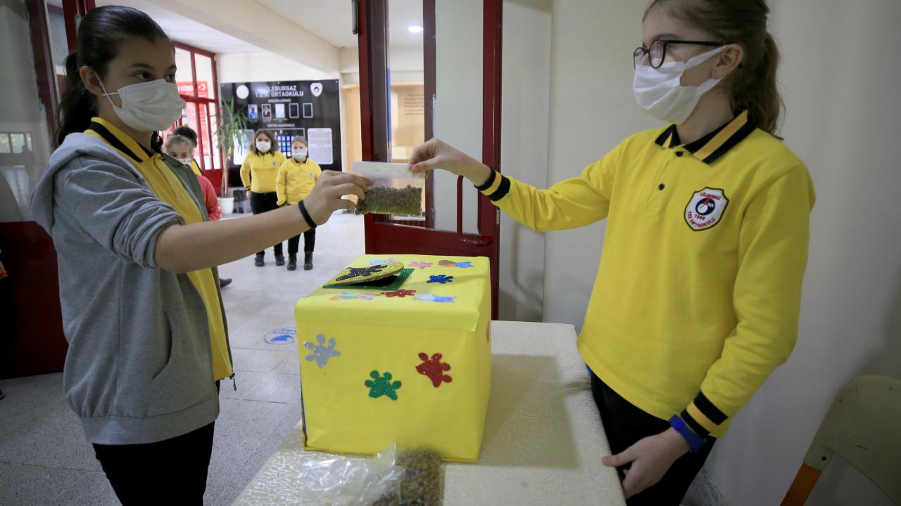 Öğrencilerden Esra Özbudak ise bir gün okula gelirken açlıktan köpük tabak yiyen kediyi görünce durumu hemen öğretmen ve arkadaşlarıyla paylaştığını belirterek, "Özellikle Kovid-19 sürecinde hayvanların yiyecek bir şeyler bulması iyice zorlaştı. O kadar zor durumda kaldı ki hayvanlar, yani köpük tabak yiyenler bile var. Bu sebeple hastalanıyorlar, ölüyorlar. Bu çok acı bir durum. Biz de bu durumu en aza indirebilmek için bu kampanyayı başlattık." dedi.