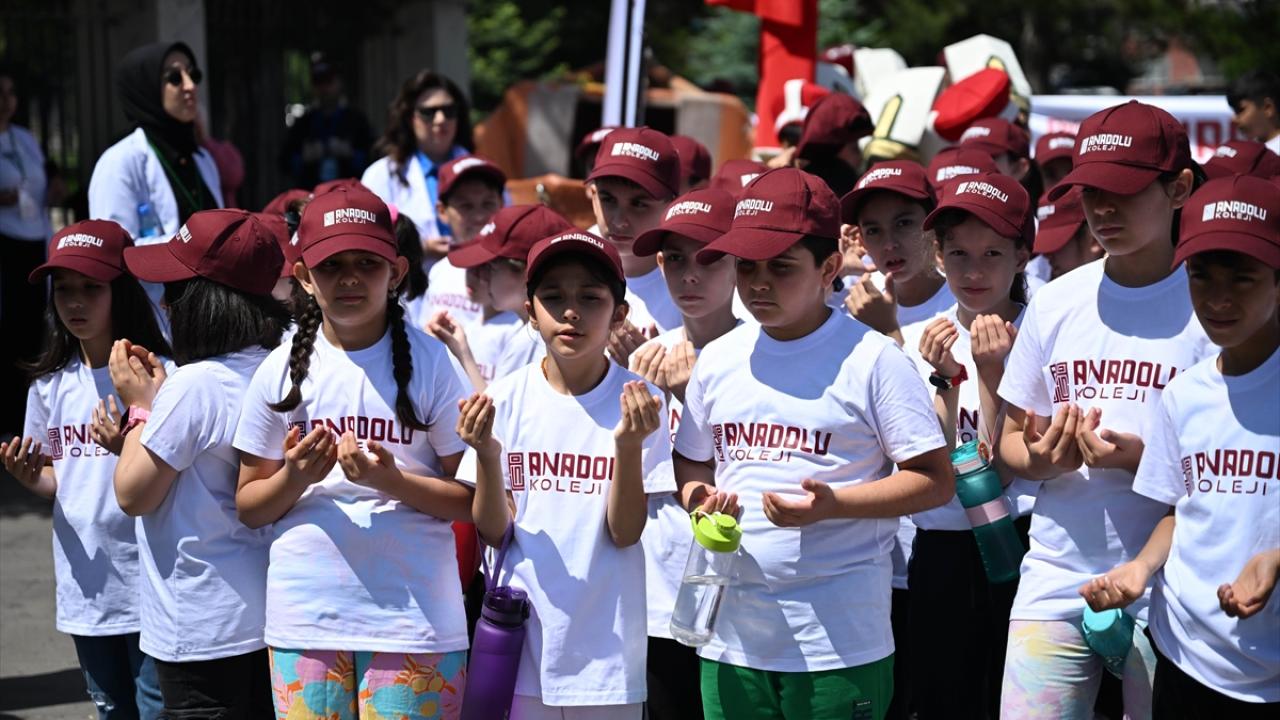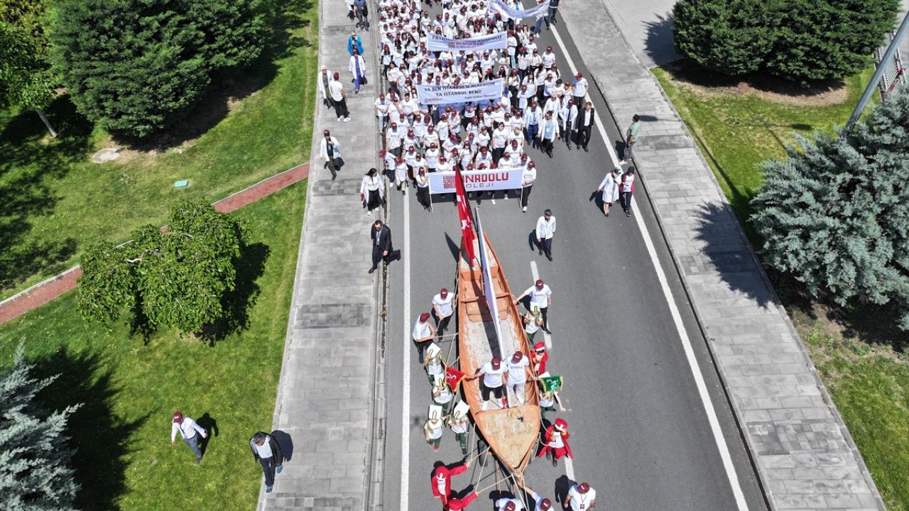 Anadolu Koleji tarafından düzenlenen etkinliğe katılan öğrenciler, Hunat Camisi önünde toplandı.