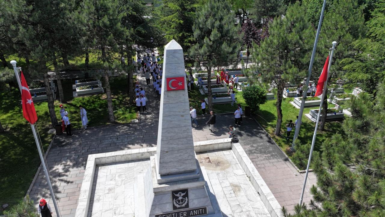 Buradaki programda, İstiklal Marşı`nın okunmasının ardından dua eden öğrenciler, şehit kabirlerini ziyaret ederek karanfil bıraktı.