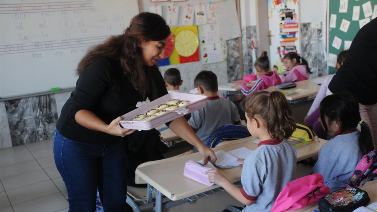 Öğrenciler kurabiye yiyerek okuma yazmayı öğreniyor