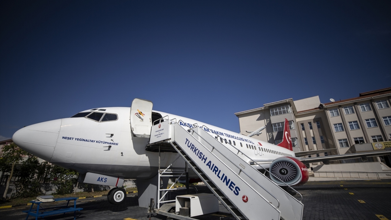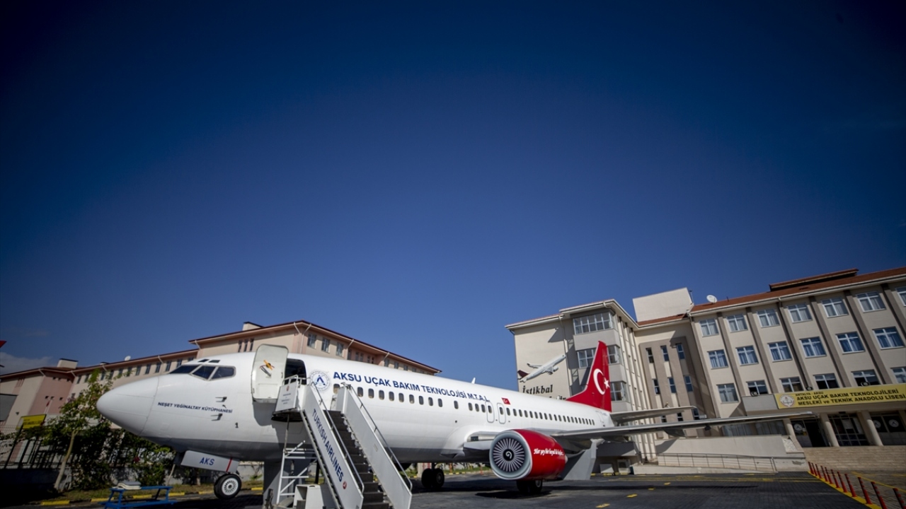 Aksu Uçak Bakım Teknolojileri Mesleki ve Teknik Anadolu Lisesinin bahçesindeki "Boeing 737-400 Classic" tipi eski yolcu uçağına simülatör eklendi.