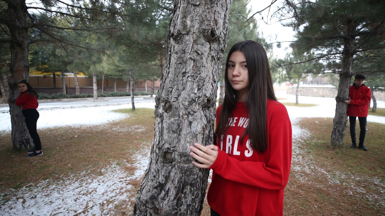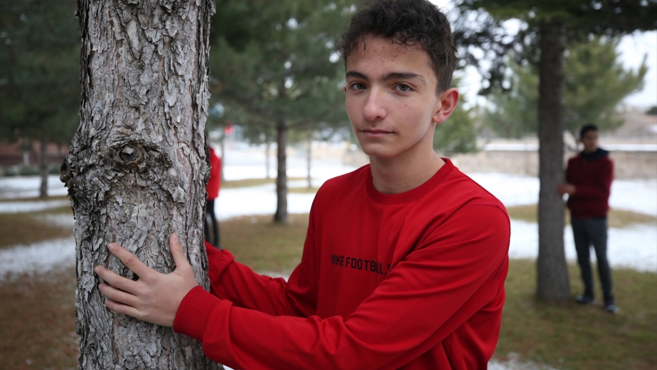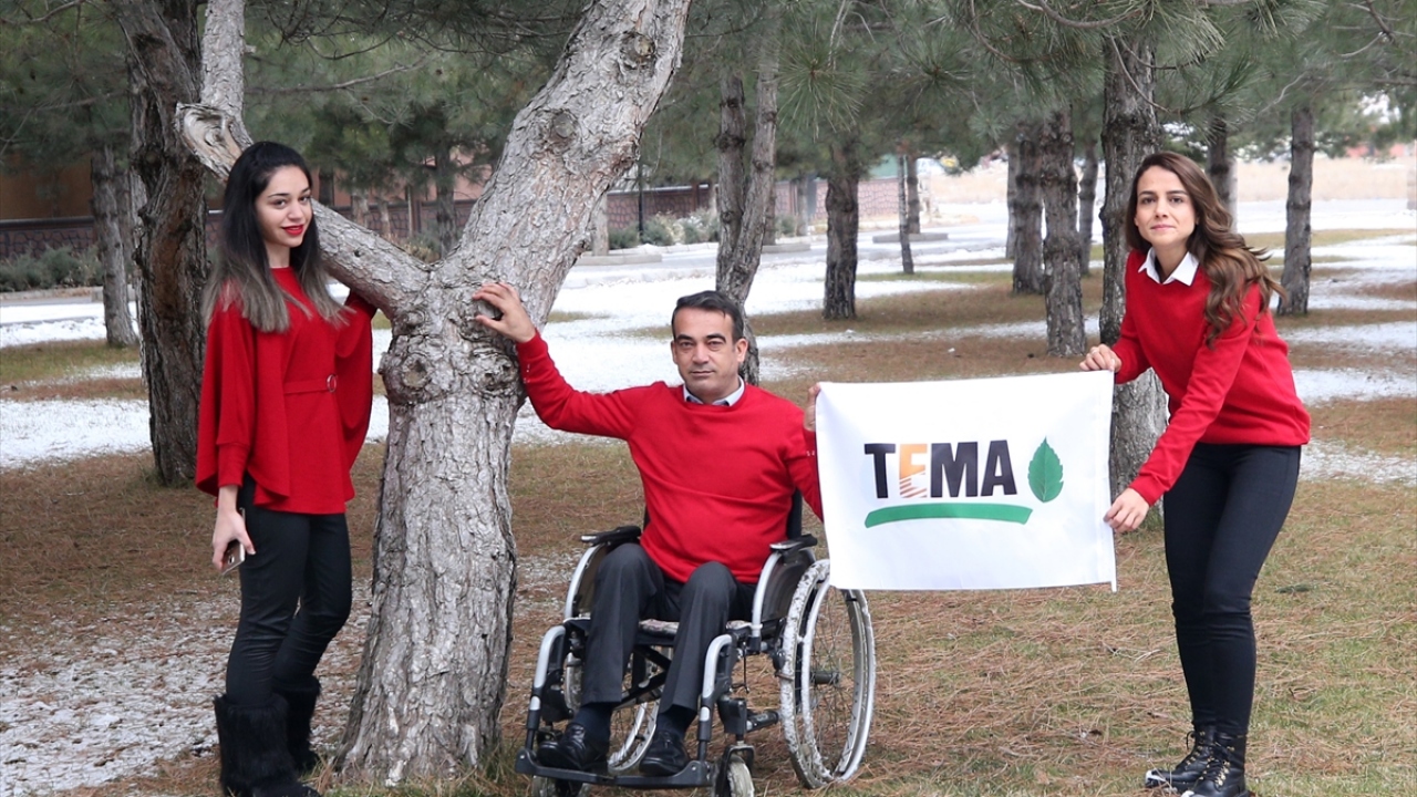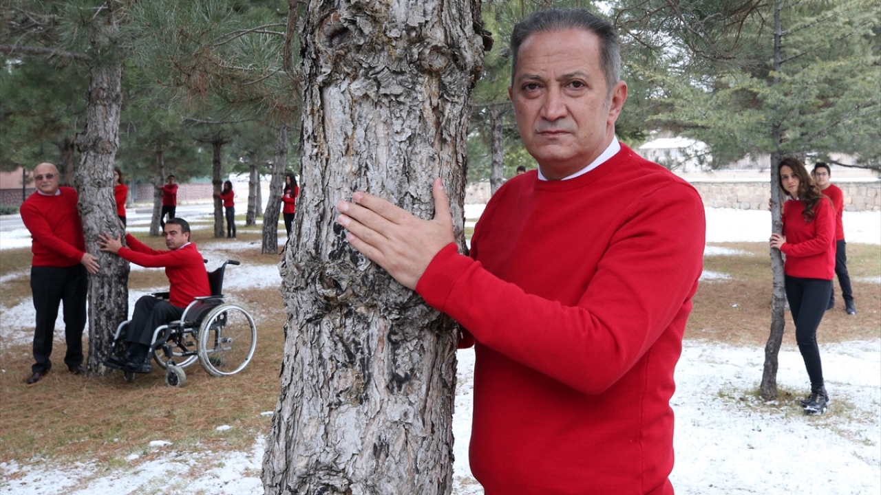 Kayseri'de düzenlenen etkinlikte önceki gün vefat eden TEMA Vakfı Kurucu Onursal Başkanı Hayrettin Karaca anısına kırmızı kazak giyen İl Milli Eğitim Müdürü Celalettin Ekinci ve beraberindeki öğrenciler, ağaçlara sarıldı.