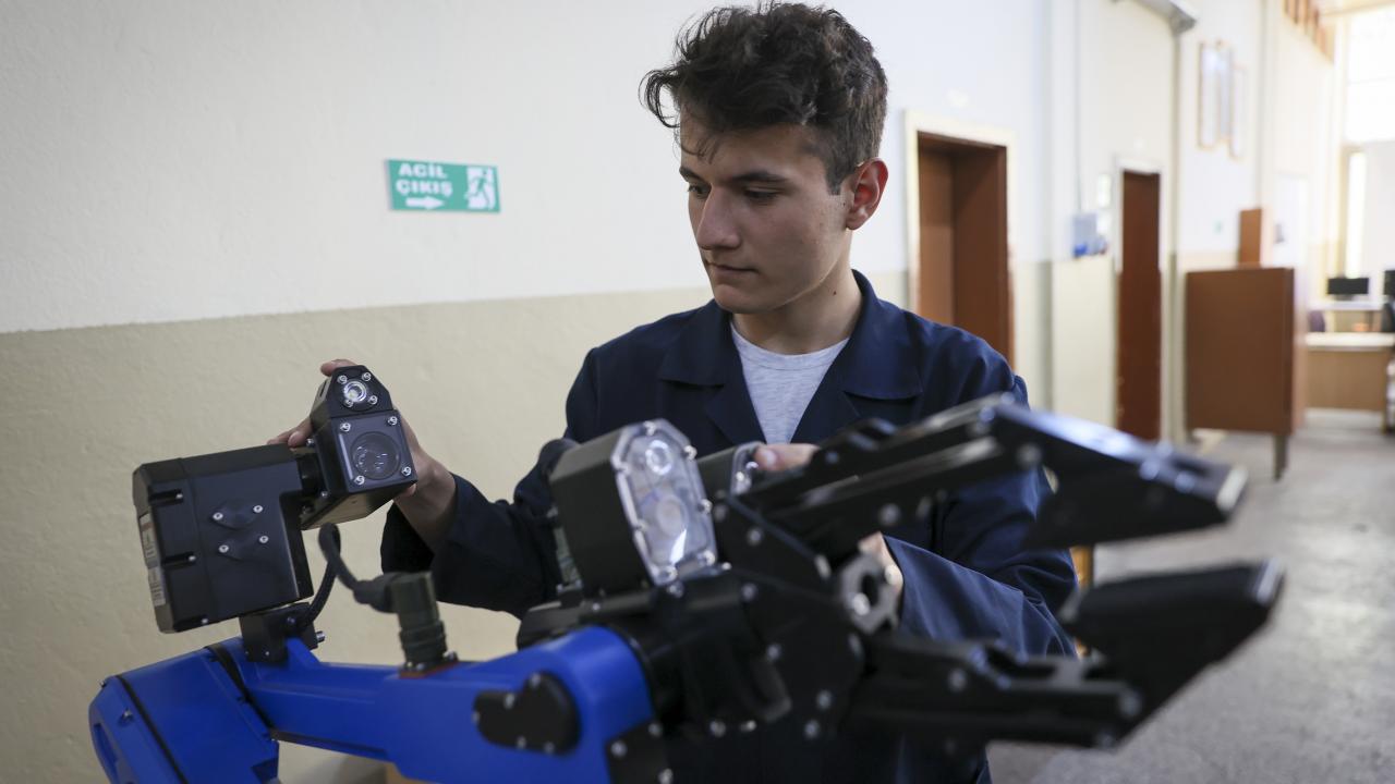 "Bunlardan en önemlisi, savunma sanayii firmalarıyla imzaladığımız protokol. Protokole göre, öğrencilerimiz, savunma elektronik, savunma mekanik sistemleri dallarını tercih ettiği takdirde 3 yıl boyunca bu firmadan burs alacak, en önemli kısmı bu. Son sınıfta iş birliği yapılan firmada staja gidecekler. Stajı bitirdikten sonra da bu firmalarda istihdam edilecekler. Öğrencilerimiz firmalarda işe girmeden önce hem işin ön aşamasını görüyor hem de o firmada üretilen robotların parçalarını okulumuzda üreterek deneyim kazanmış oluyor. Döner sermayeden öğrencilere üretimleri karşılığı yapılan ödemeyle de maddi destek sağlanıyor."