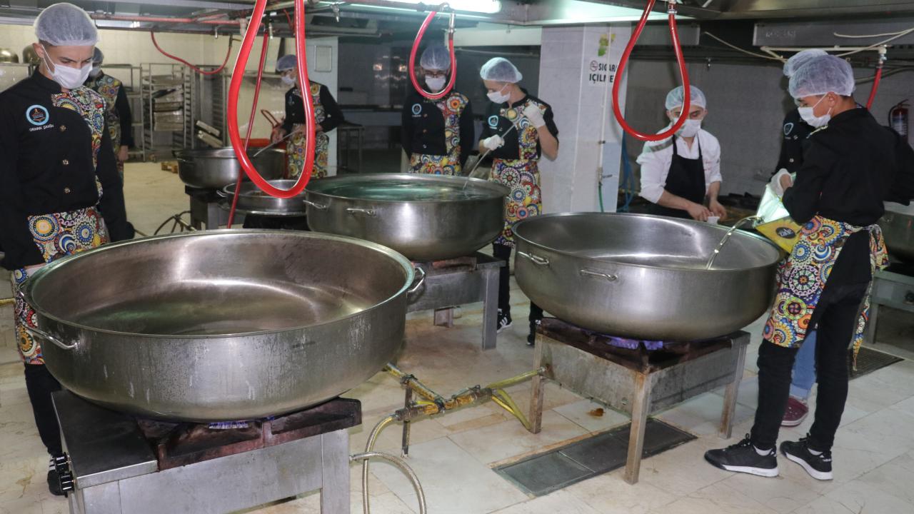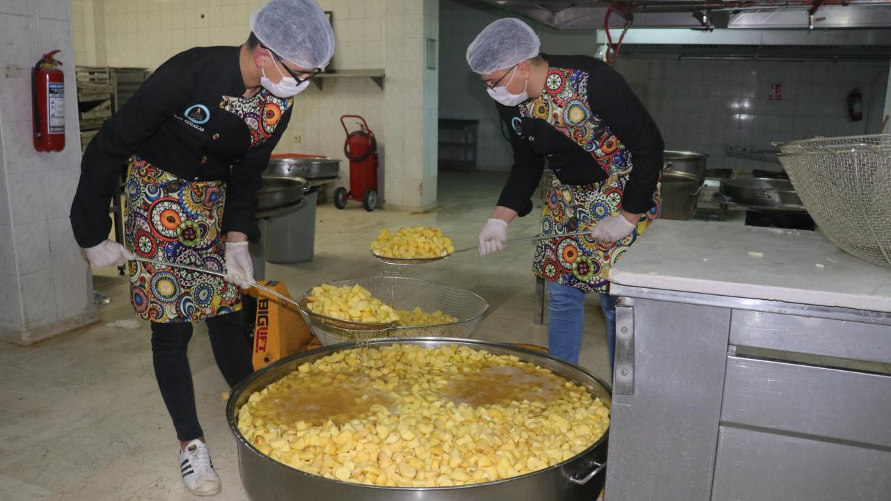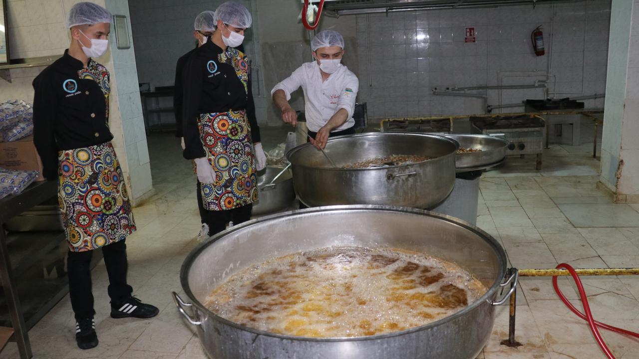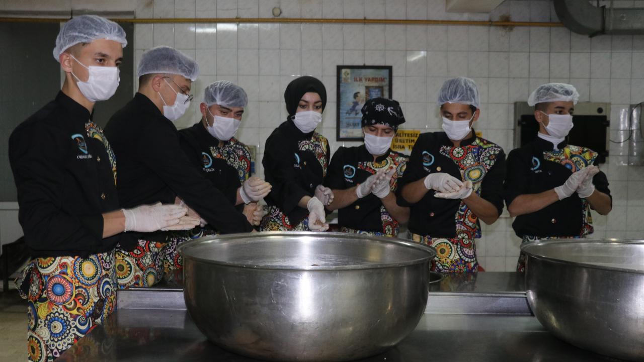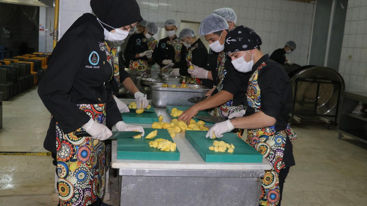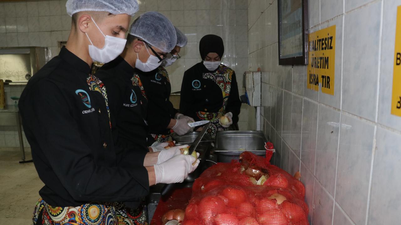 Yozgat Fatih Mesleki ve Teknik Anadolu Lisesi yiyecek-içecek bölümü, öğrencileri, 7 ilçede taşımalı sistemle eğitim yapan 5 bin öğrencinin günlük yemek ihtiyacını karşılıyor.