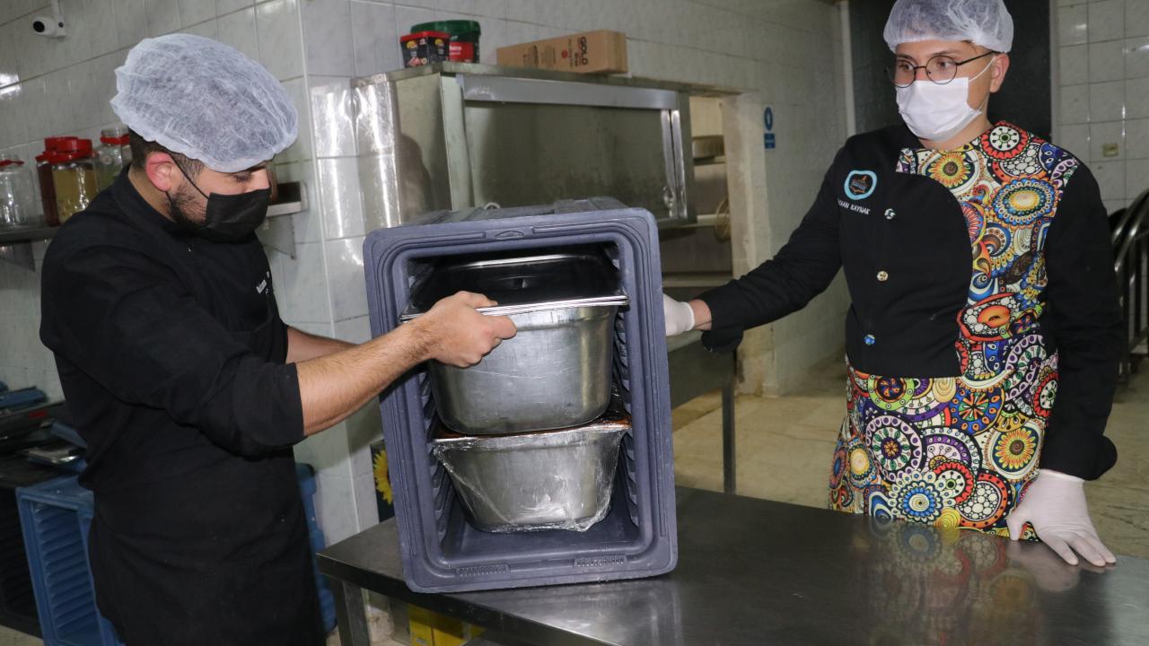 Öztürk, yemekleri hazırladıktan sonra paketleyip, özel kutulara koyduklarını anlatarak, "Bu kutular yemekleri 12 saat kadar sıcak tutabiliyor. Bu şekilde bütün öğrencilerimize sıcak yemek ulaştırıyoruz." diye konuştu.