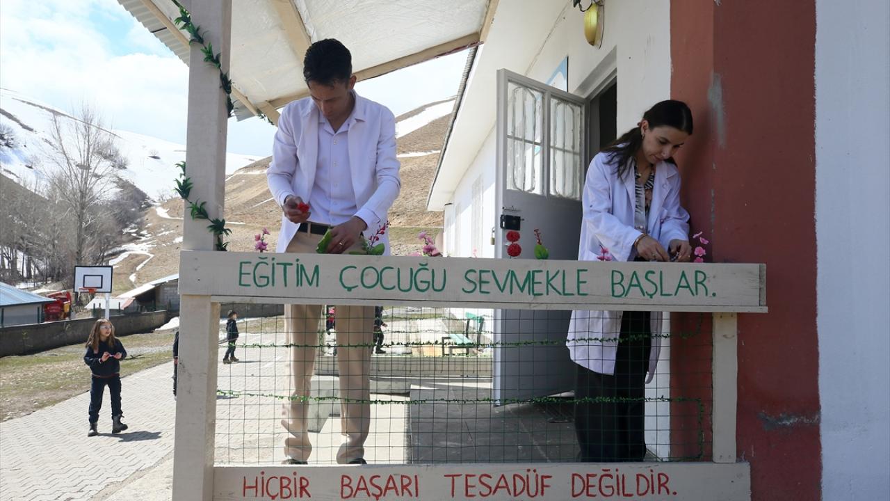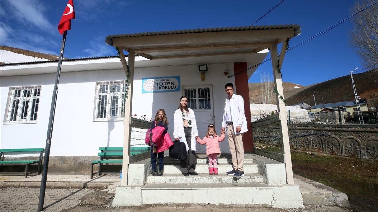 Muş'un bir dağ köyünde görev yapan öğretmen çift, kendi imkanlarıyla birçok bölümünü yeniledikleri okulda çocukların en iyi eğitimi alabilmesi için çaba gösteriyor.