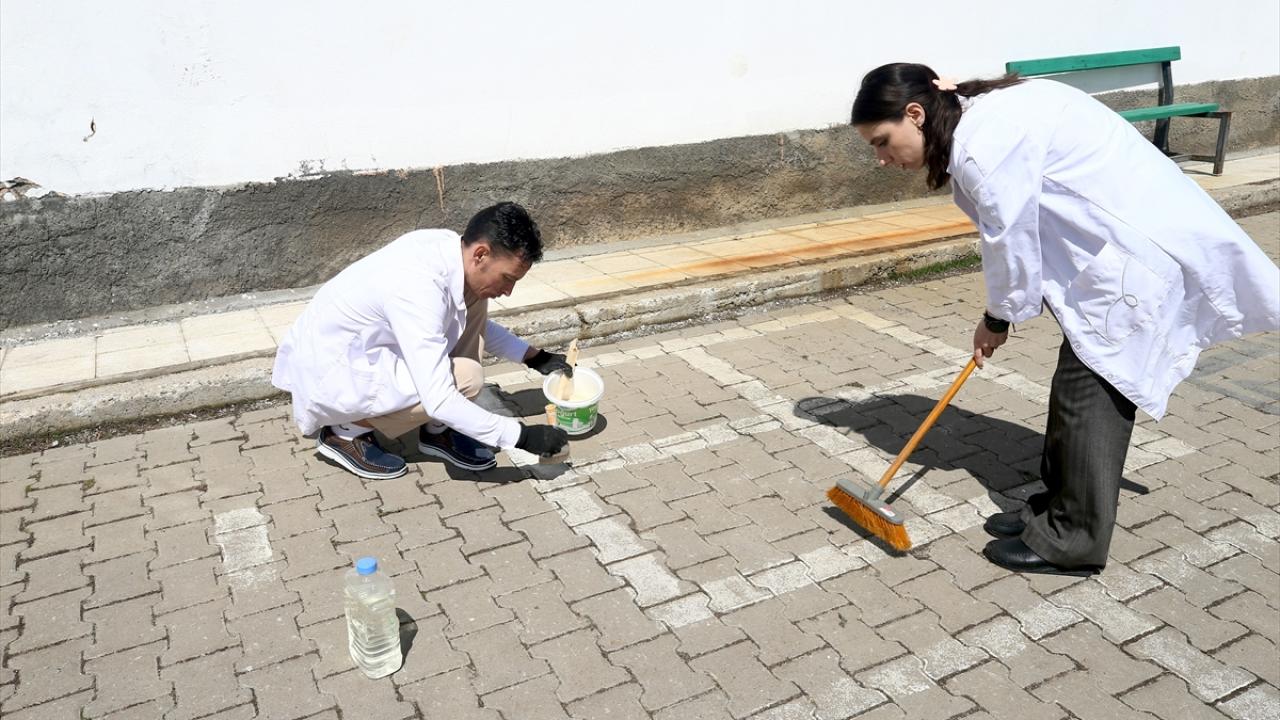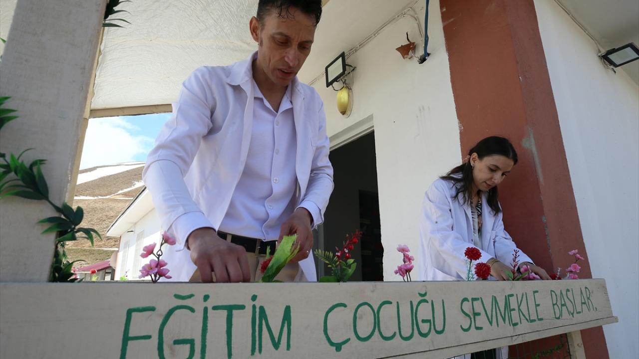 Girişlere sundurma yapan, binanın eksikliklerini gideren öğretmenler, duvarlara eğitici ve motive edici sözler yazarak öğrencilerine ferah bir eğitim ortamı oluşturdu.