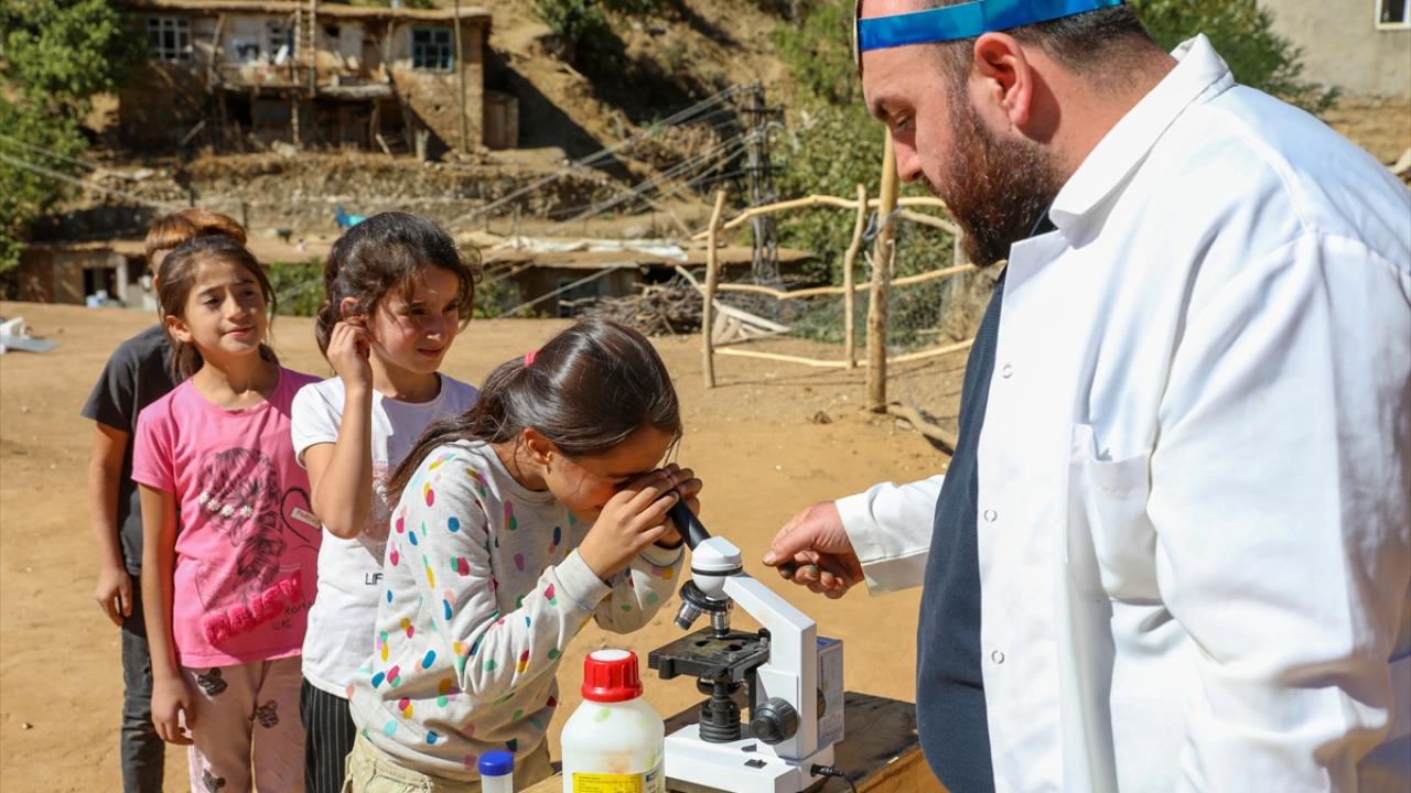 Öğrencilerden Esra Kaya, masal ekibini görünce sevinç ve şaşkınlık yaşadığını anlatarak, "Öğretmenimiz masal anlattı, biz dinledik. Çok güzeldi. Deney yaptık ve mikroskoptan baktık." ifadelerini kullandı.