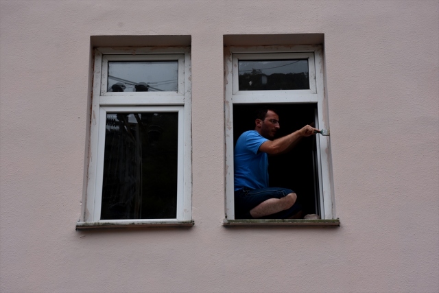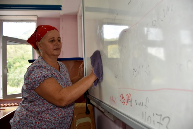 Trabzon`un Arsin ilçesindeki Atayurt Alparslan İlkokulu ve İmam Hatip Ortaokulunun Müdürü İsmail Özer ve 8 öğretmen, veliler ve hayırseverlerin maddi desteğiyle 2018-2019 eğitim-öğretim yılı öncesi okullarının boya, temizlik, bakım ve onarımını yapıyor. Sınıf öğretmeni Neslihan İskender (fotoğrafta) "Bunu eğitimin bir parçası olarak düşünüyorum. Eğer ben temizlik yapmazsam çocuklara iyi örnek olamam diye düşünüyorum." dedi.