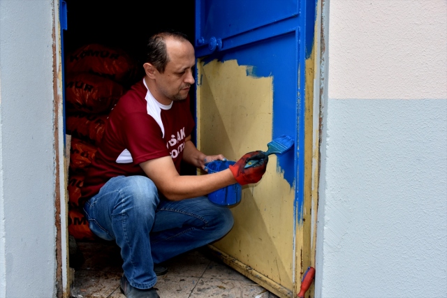 Trabzon'un Arsin ilçesindeki Atayurt Alparslan İlkokulu ve İmam Hatip Ortaokulunun Müdürü İsmail Özer ve 8 öğretmen, veliler ve hayırseverlerin maddi desteğiyle 2018-2019 eğitim-öğretim yılı öncesi okullarının boya, temizlik, bakım ve onarımını yapıyor.