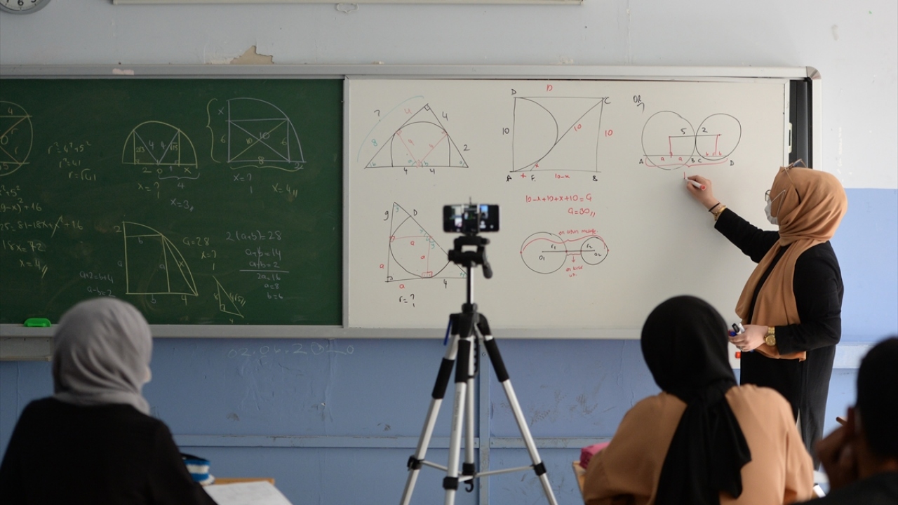 Öğretmenler, uzaktan eğitim derslerini sınıflarında işliyor