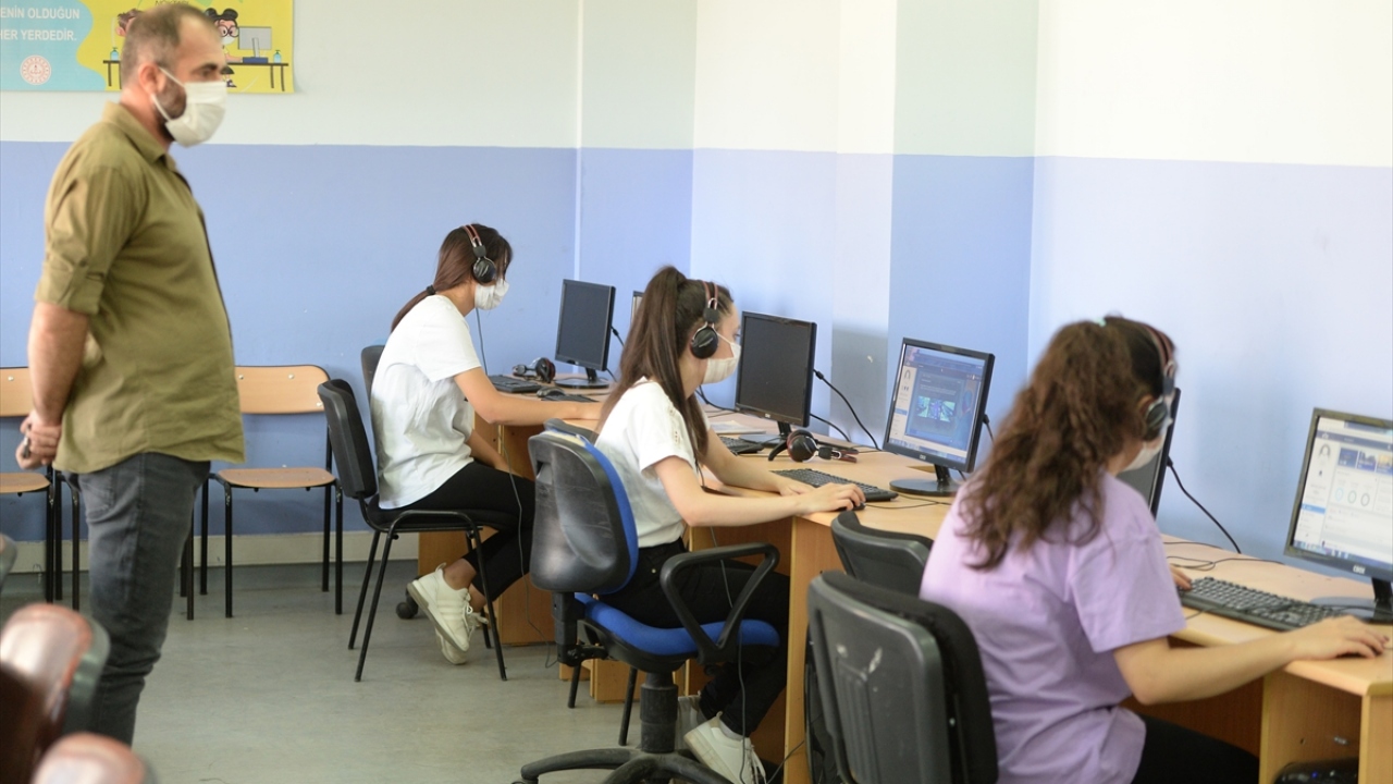 Mardin İMKB Sosyal Bilimler Lisesinde öğretmenler, uzaktan eğitim derslerini sınıflarda gerçekleştiriyor.