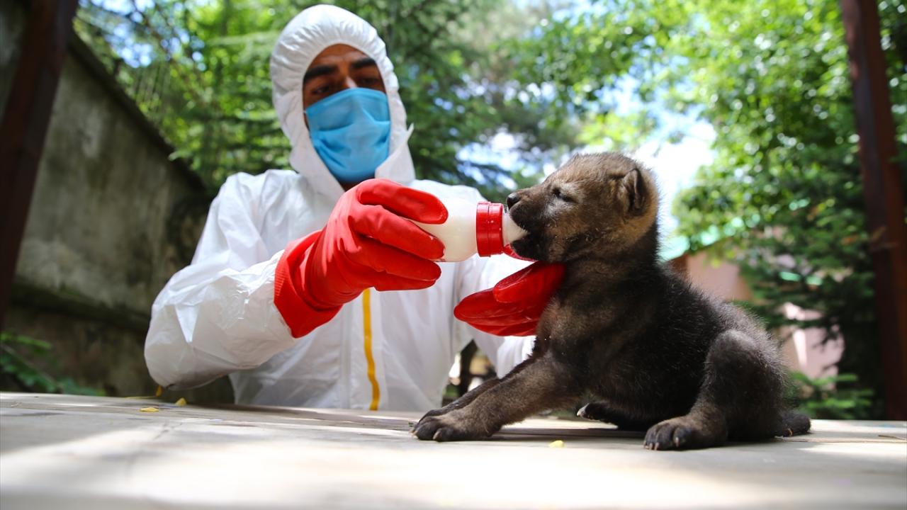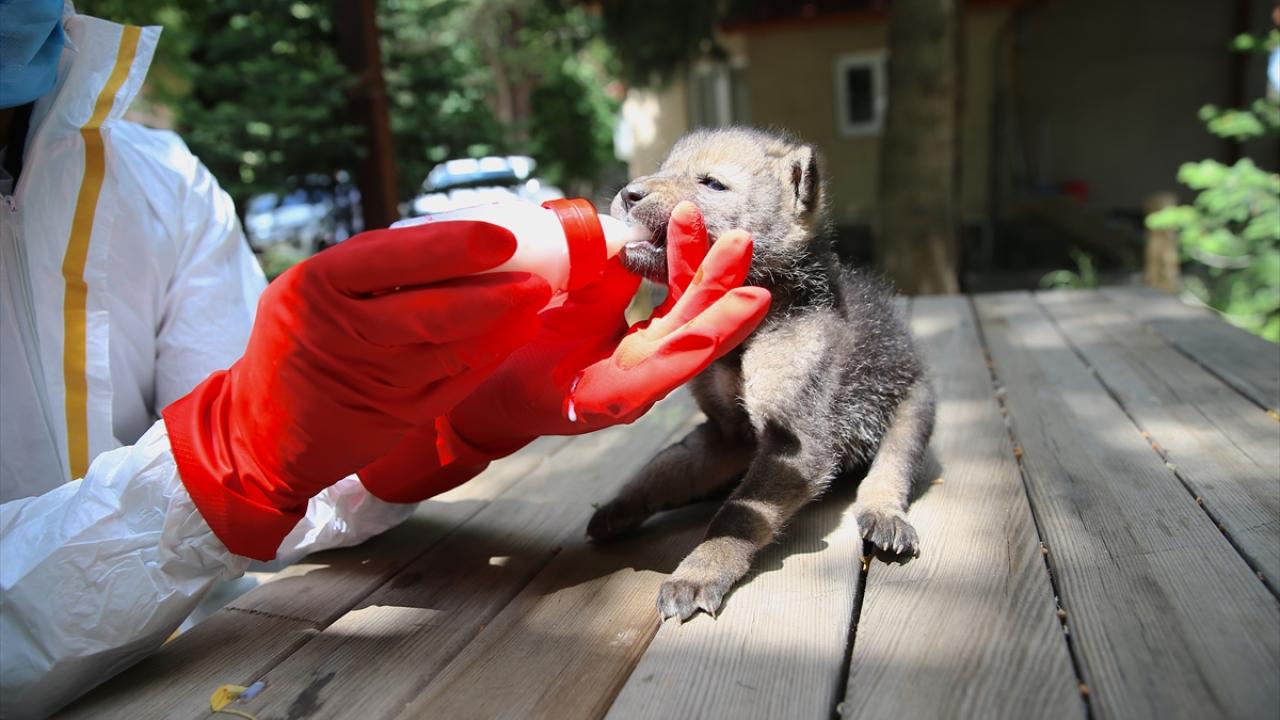 Tek başına kalan kurt yavrusunu da alan ekipler, yaptıkları kontrolde yavrunun bir ayağının zedelendiğini gördü. Tedavisi müdürlükte süren yavruya gerekli aşılar yapıldı. Ekipler, bir aylık olduğu tahmin edilen kurt yavrusunu biberonla süt vererek besliyor.