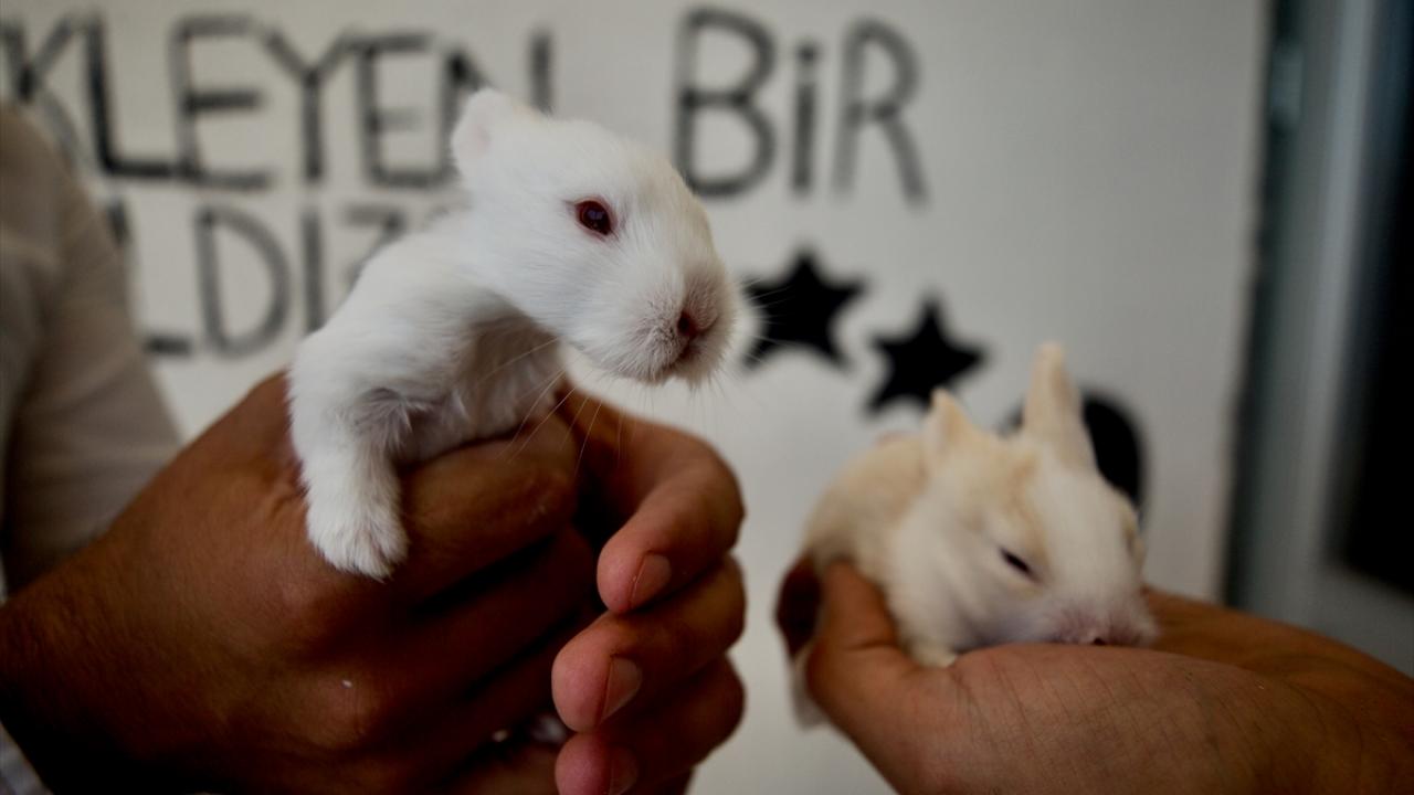 Tavşanlardan birinin yavruladığını dile getiren Aydoğan, "Yavrular okulumuzun maskotu oldu." dedi.