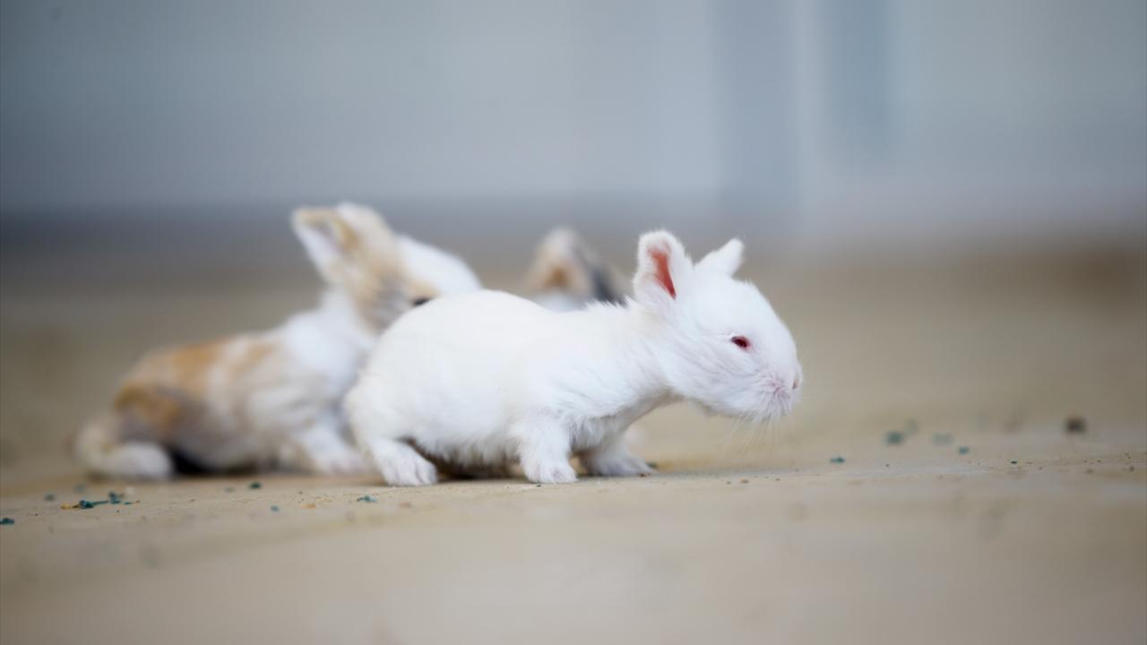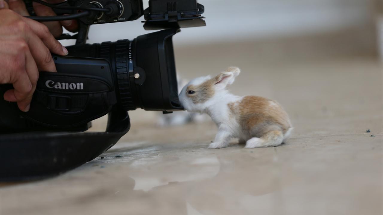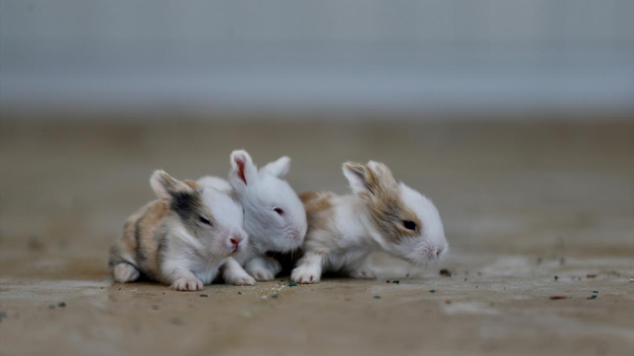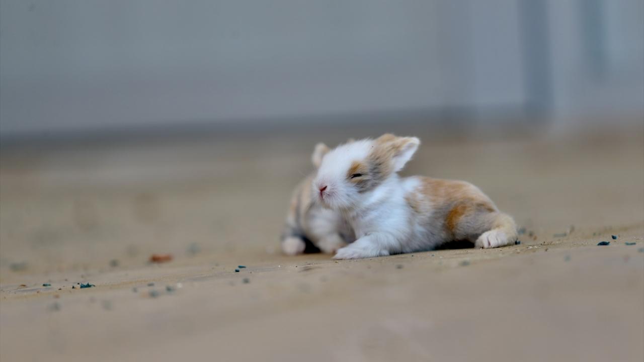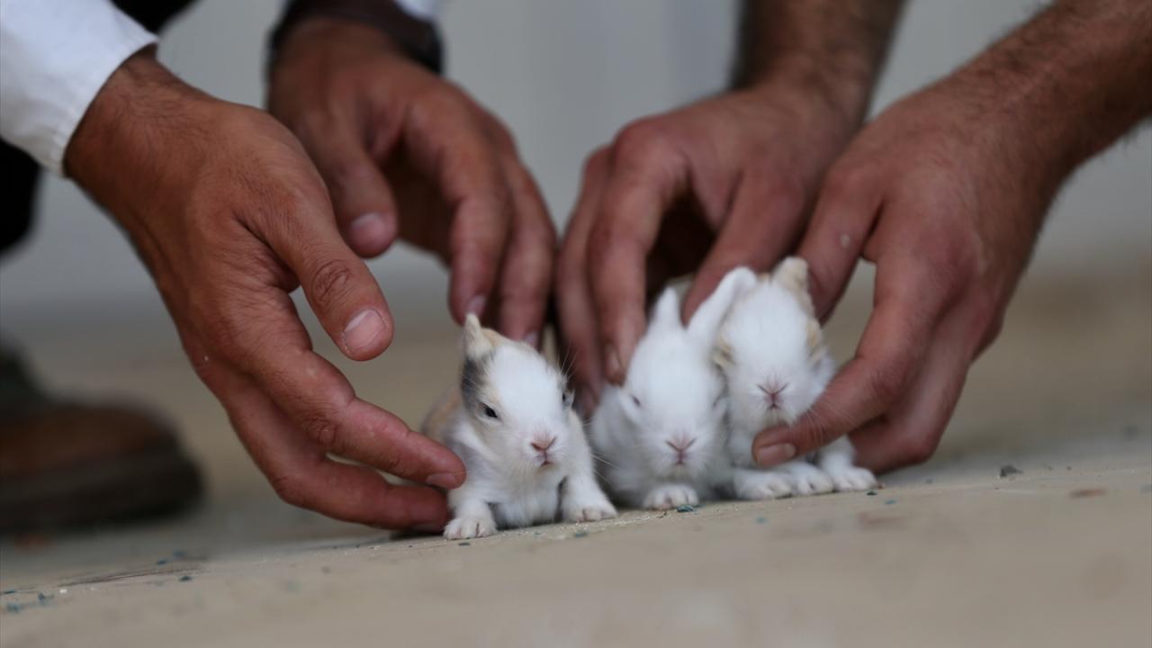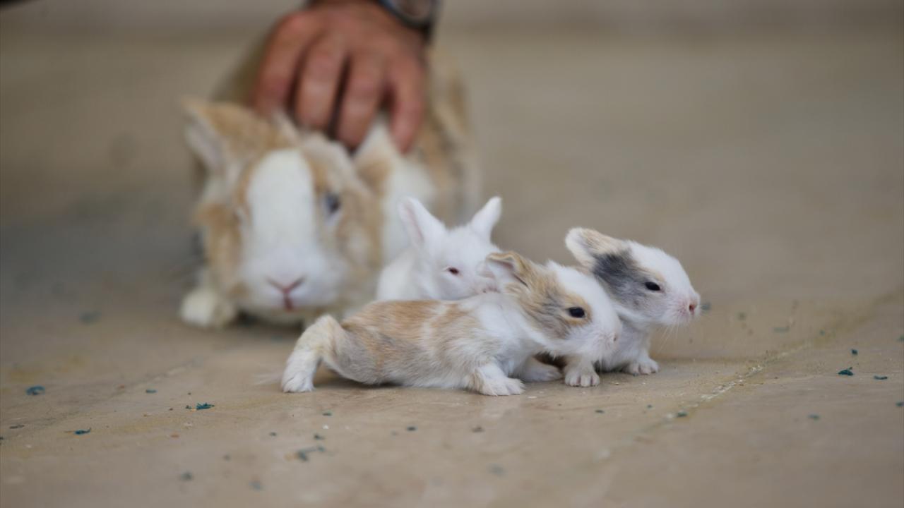 Bakımları özenle yapılan tavşan yavrularının etrafta gezinmesi renkli görüntüler oluşturuyor.