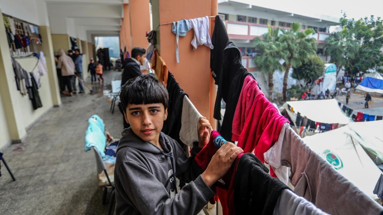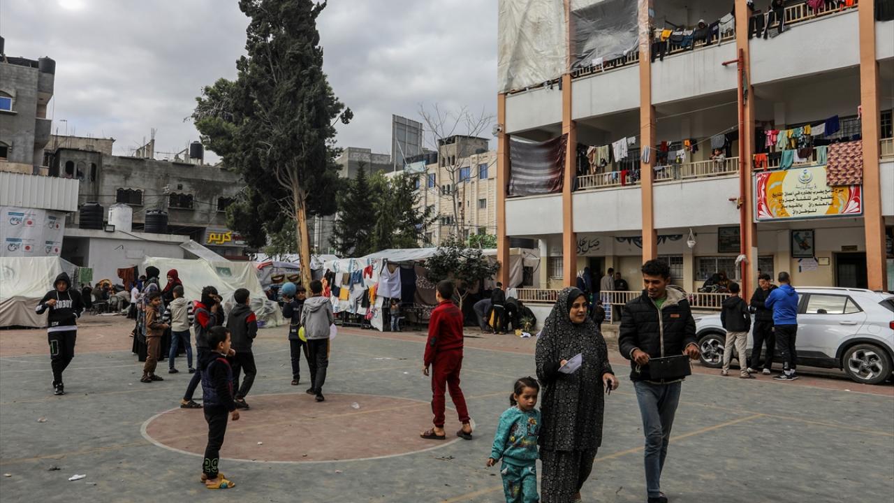 İsrail'in Gazze Şeridi'ne düzenlediği saldırılar sonucu evinden olan Filistinliler, sığındıkları Refah kentindeki Kudüs okulunda zor şartlar altında yaşamlarını sürdürüyor