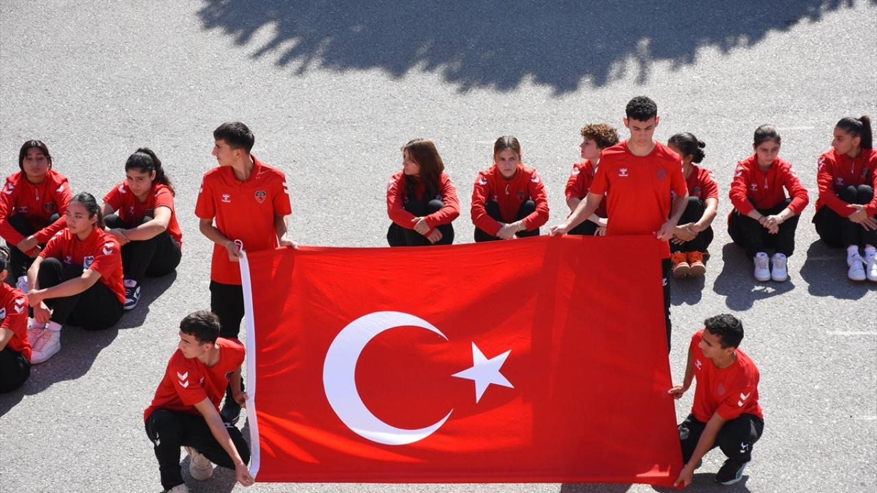 Okul bahçesinde toplanan 250 öğrenci, "Gazze" koreografisi oluşturdu, Türk bayrağı açtı.