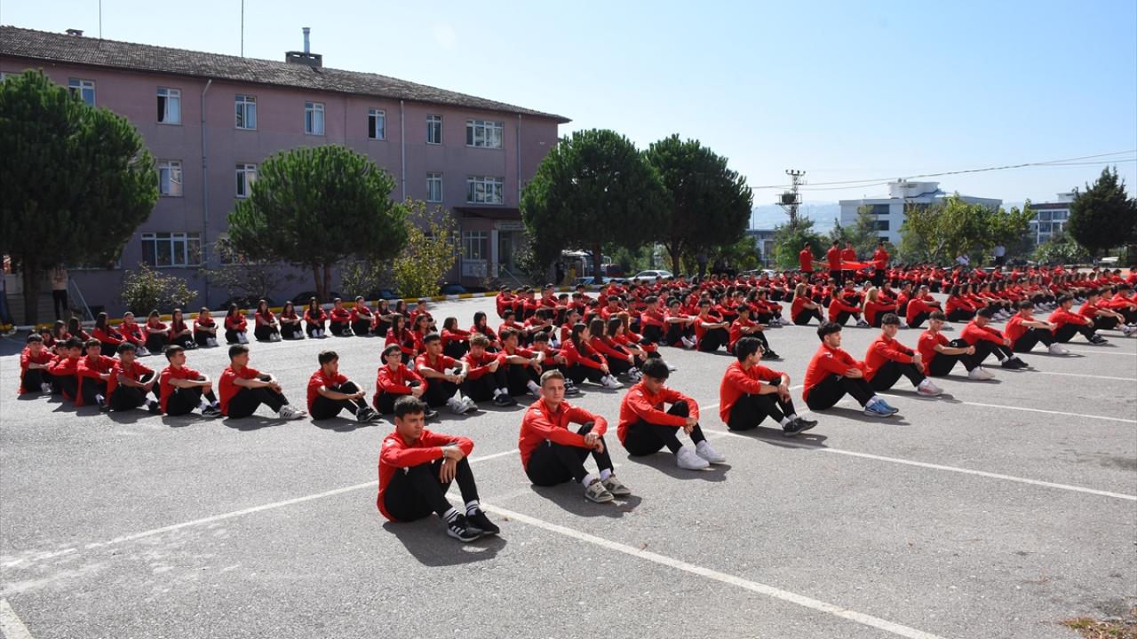 Keçiören Sosyal Bilimler Lisesi`ndeki etkinlikte, öğrenciler okul bahçesinde bir araya geldi.