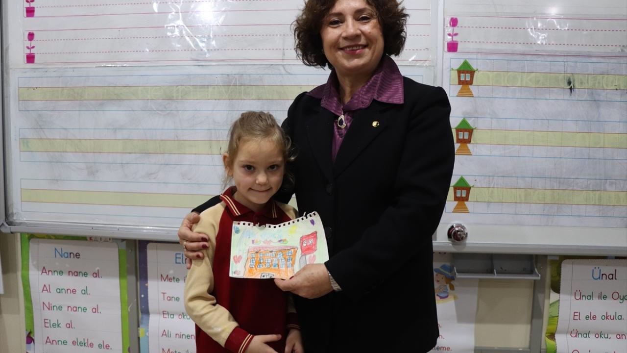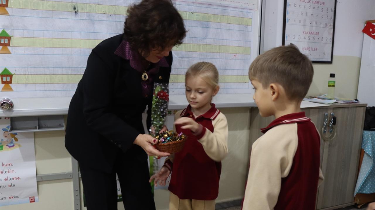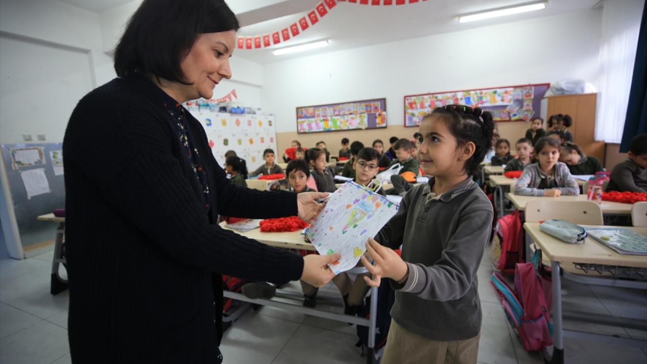 Hamdi Helvacıoğlu İlkokulu`nda 1. sınıf öğrencileri, sınıf öğretmenlerine çiçek, yazdıkları mektupları ve yaptıkları resimleri hediye etti.