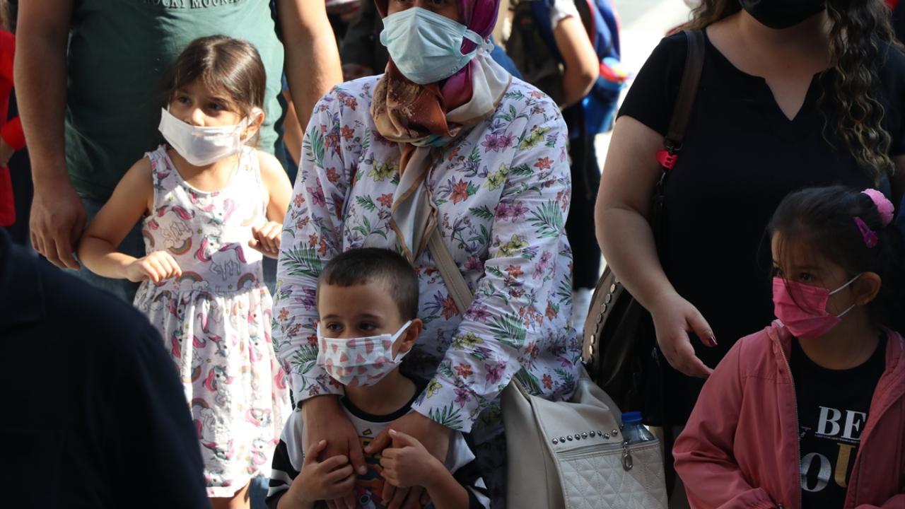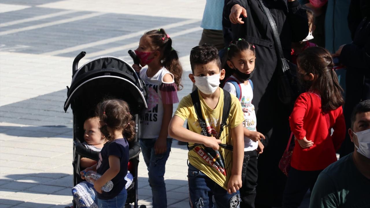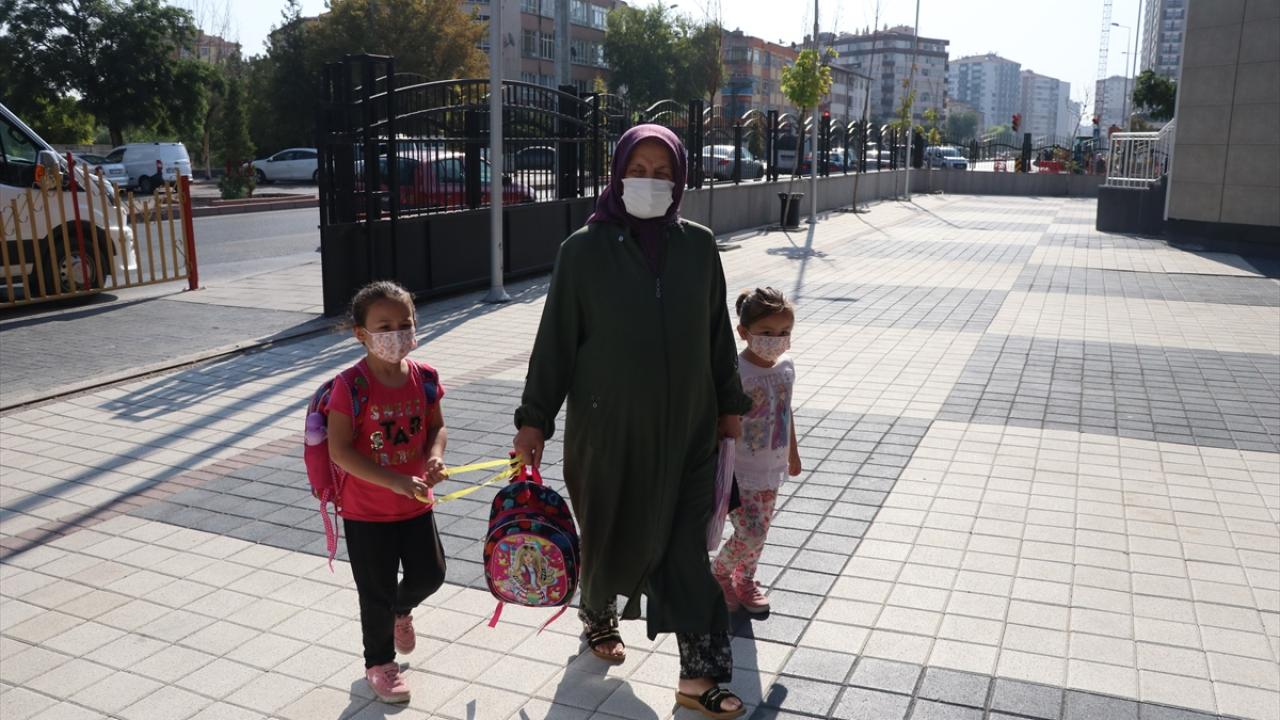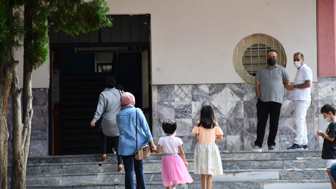 Okullara ebeveynlerinin eşliğinde gelen öğrenciler, maske kontrolü ve Hayat Eve Sığar (HES) kodu sorgulamasının ardından bahçeye alındı.