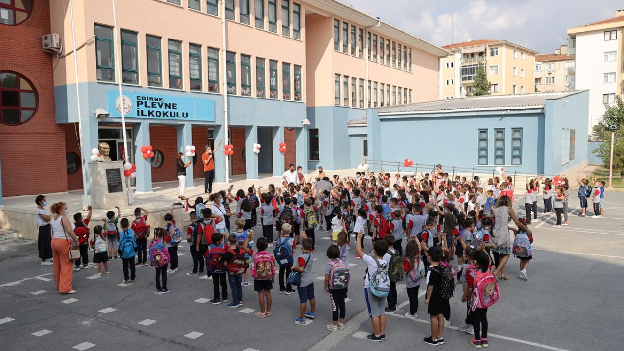 Edirne`de öğrenim görecekleri okullara aileleriyle gelen minik öğrenciler, okula başlamanın mutluluğunu yaşadı.