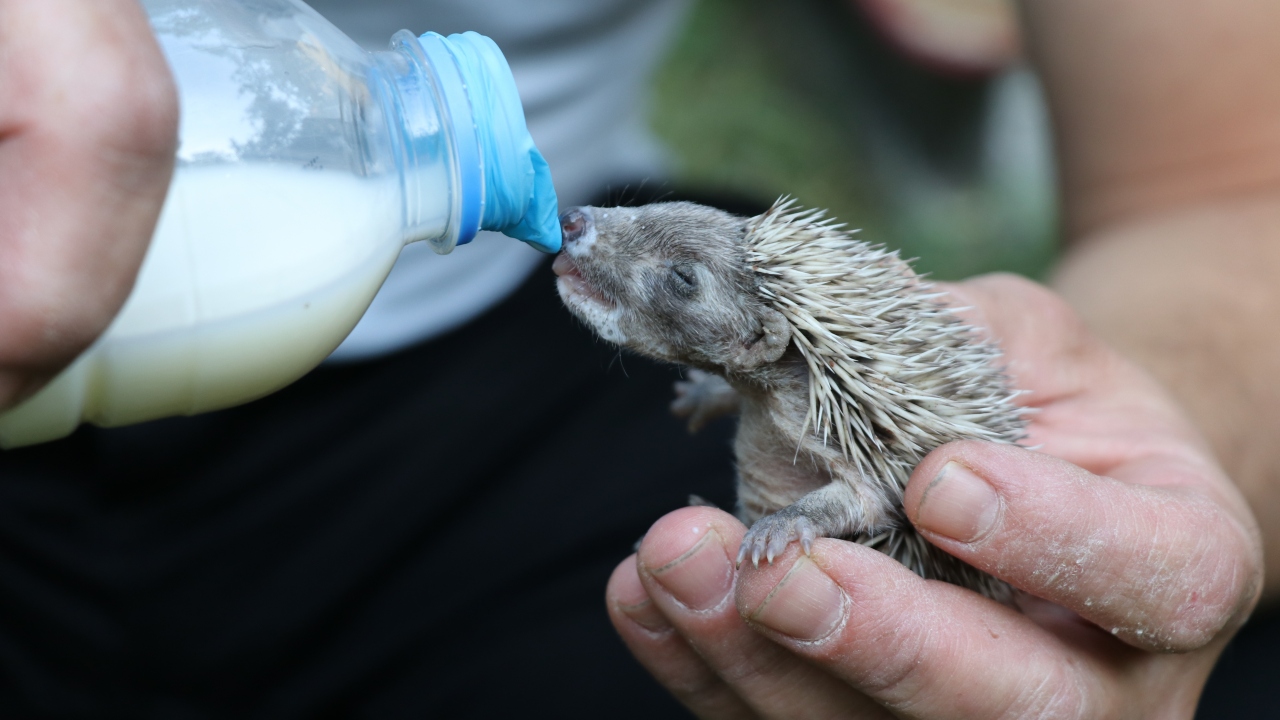 Kütahya'da bir kişi, arabanın altında kalarak ölen kirpinin dört yavrusunu biberonla evinde besliyor.