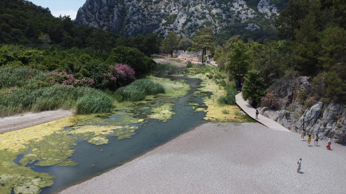 Likya uygarlığının en önemli yerleşim yerlerinden biri olan Olympos, kalıntılarının yanı sıra denize akan ırmağın her iki yakasında bulunmasıyla dikkati çekiyor.