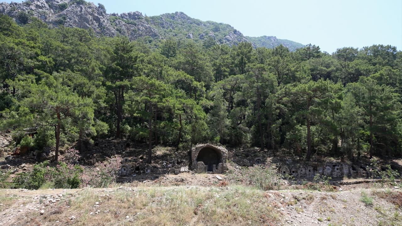 Kentin ortasından geçen derenin güney yamacındaki yoğun çam ve defne ağaçları nedeniyle bugüne kadar erişilemeyen mezar yapılarını, bitki temizliği sonrası gün yüzüne çıkardıklarını anlatan Öztaşkın, ilk kez mezar alanının hem karşı yamaçtan izlenebilir hale geldiğini hem de düzenlenen patikalarla ziyaretçilerin ulaşımına açıldığını vurguladı.
