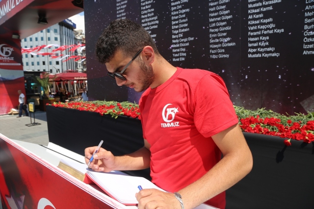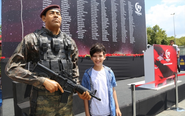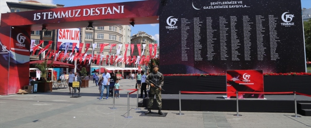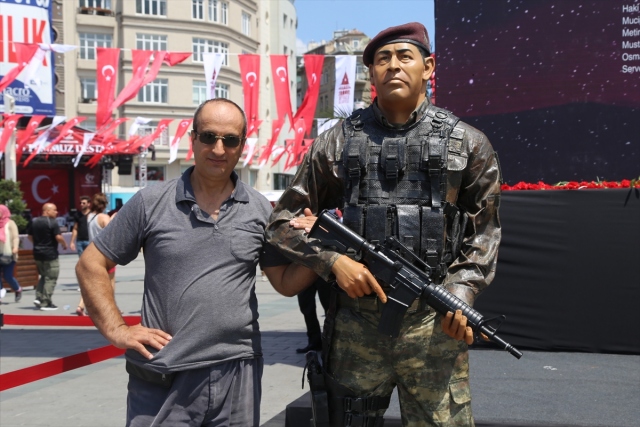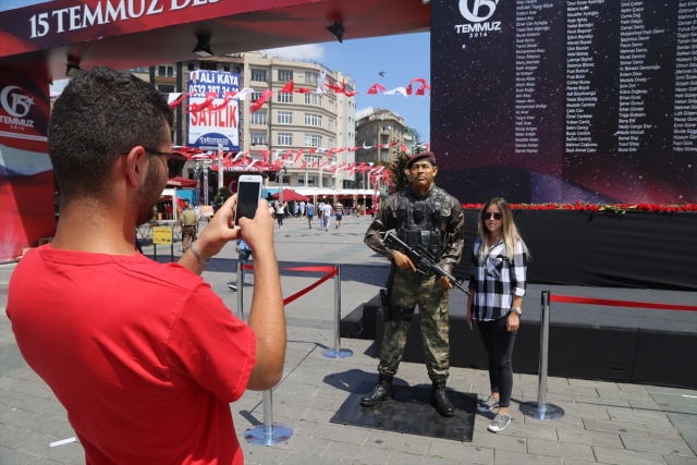 Fetullahçı Terör Örgütü'nün (FETÖ) 15 Temmuz 2016'daki darbe girişiminde şehit olan Astsubay Ömer Halisdemir'in Taksim'deki heykeline vatandaşlar yoğun ilgi gösteriyor.