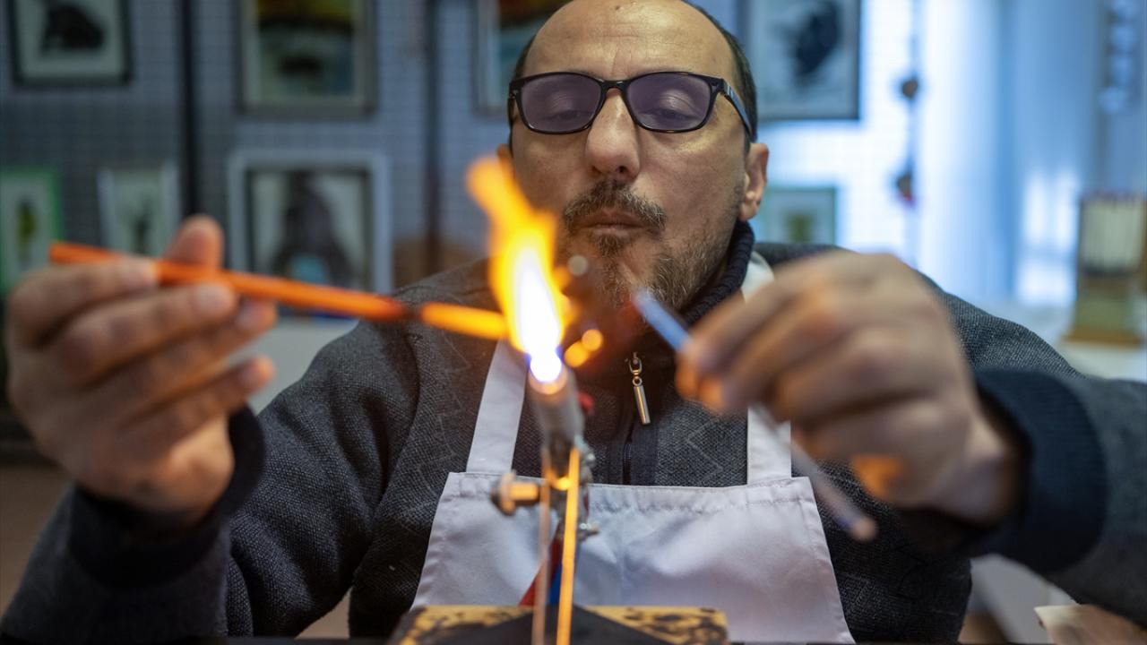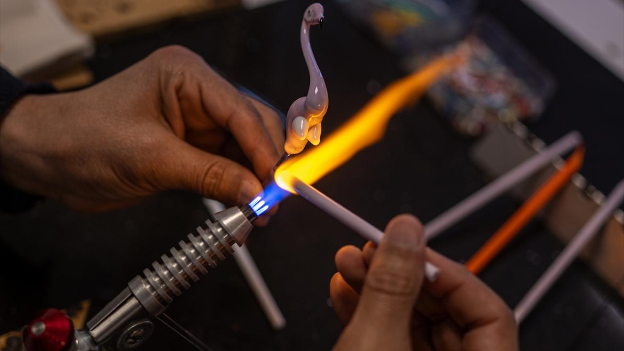 Ateşte erittiği cam çubuklardan hayal ettiği nesneleri, hayvan figürlerini yapan, aynı zamanda bu sanata ilgi duyanlara eğitimler veren Ali Rıza Ayaz, atölyesinde AA muhabirinin sorularını yanıtladı.