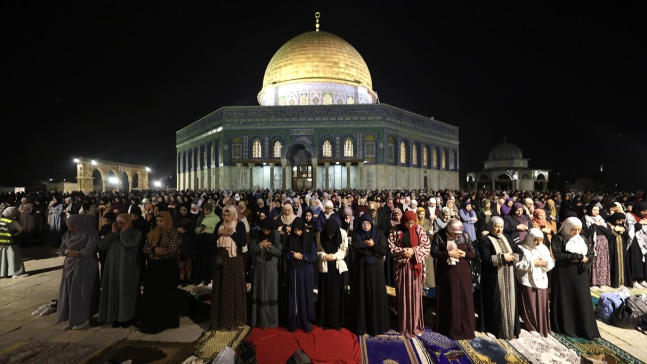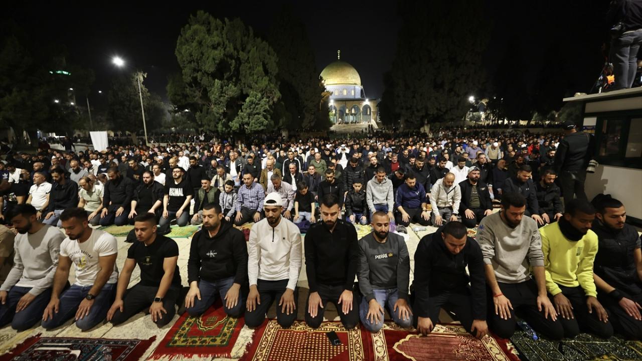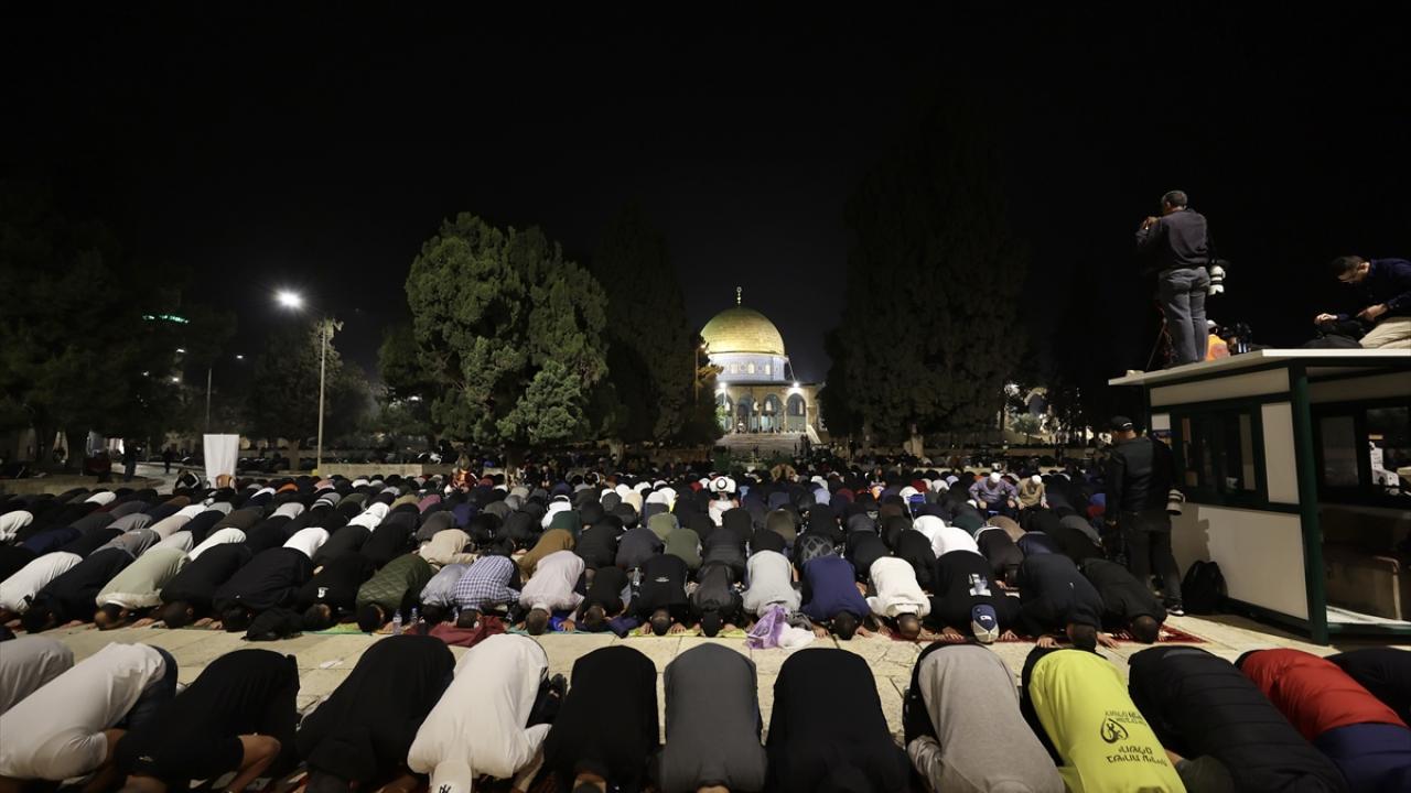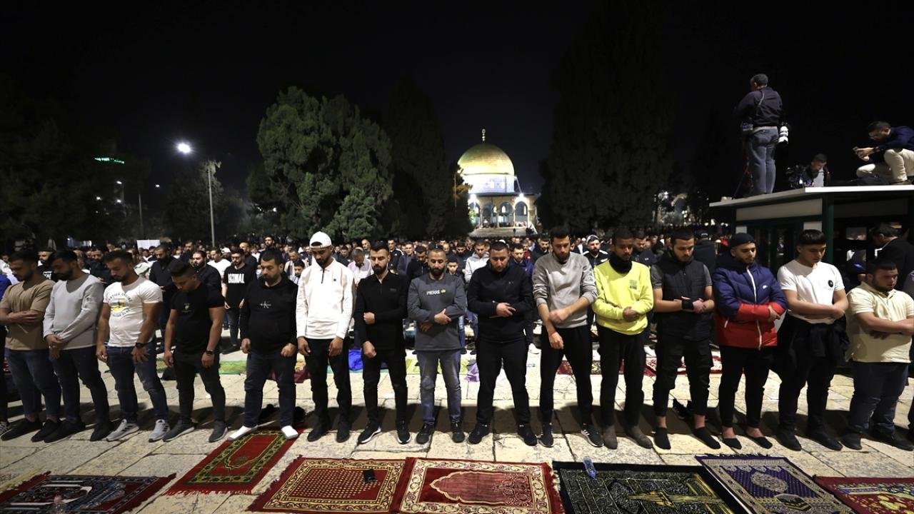 İsrail'in kısıtlamalarına ve zaman zaman ibadet edenlere karşı şiddet kullanarak müdahale etmesine rağmen on binlerce Müslüman, teravih namazını Mescid-i Aksa'da kıldı.