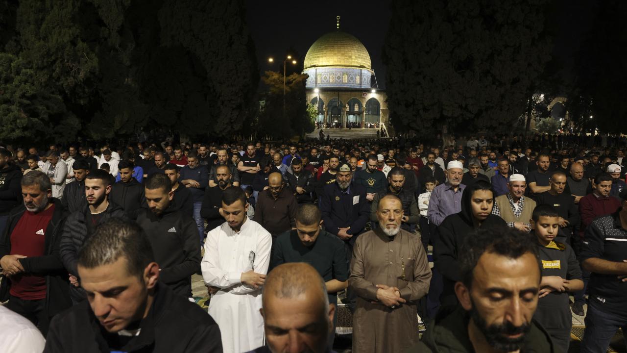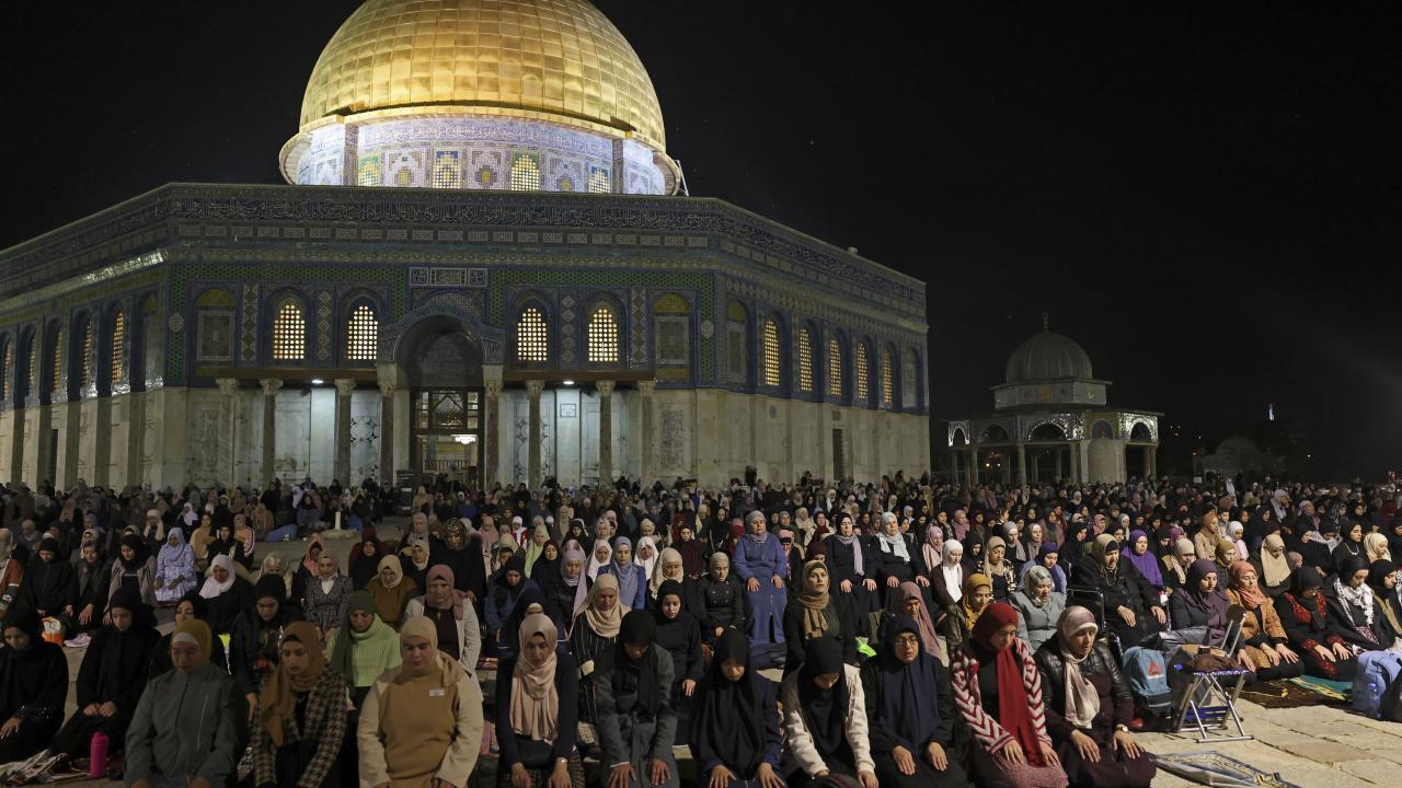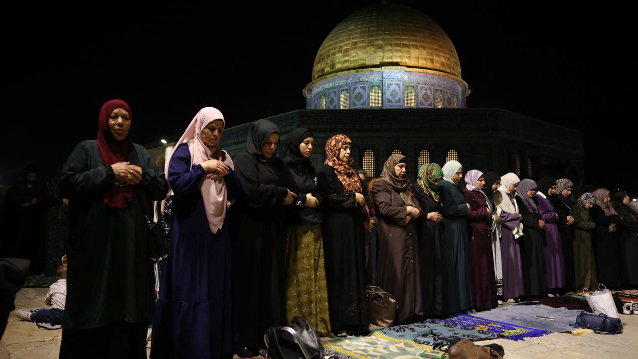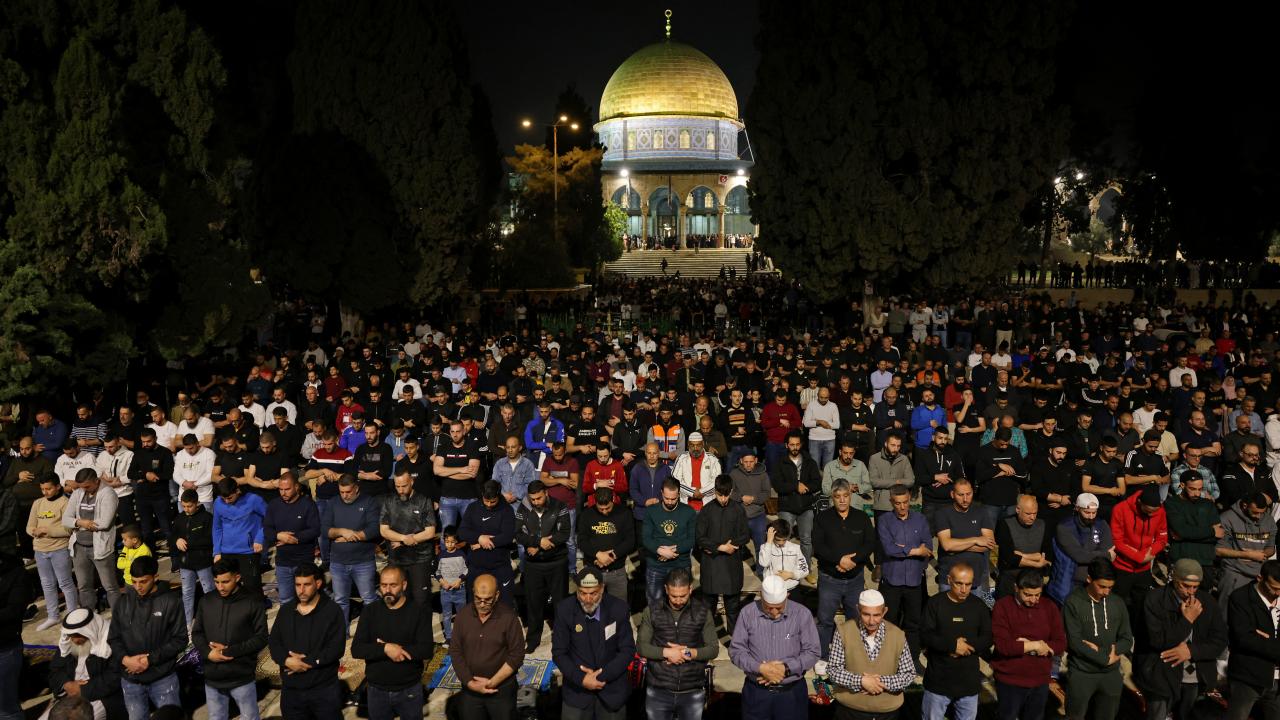 İsrail'in kısıtlamalarına ve zaman zaman ibadet edenlere karşı şiddet kullanarak müdahale etmesine rağmen on binlerce Müslüman, teravih namazını Mescid-i Aksa'da kıldı.