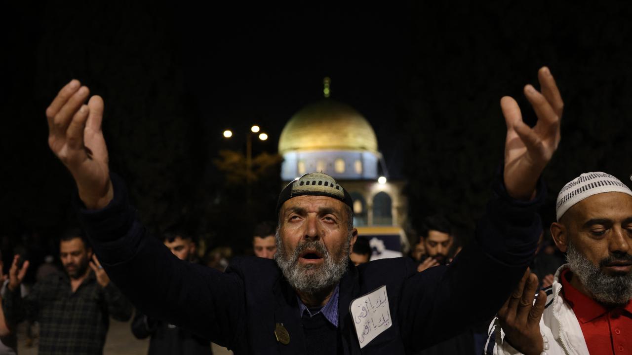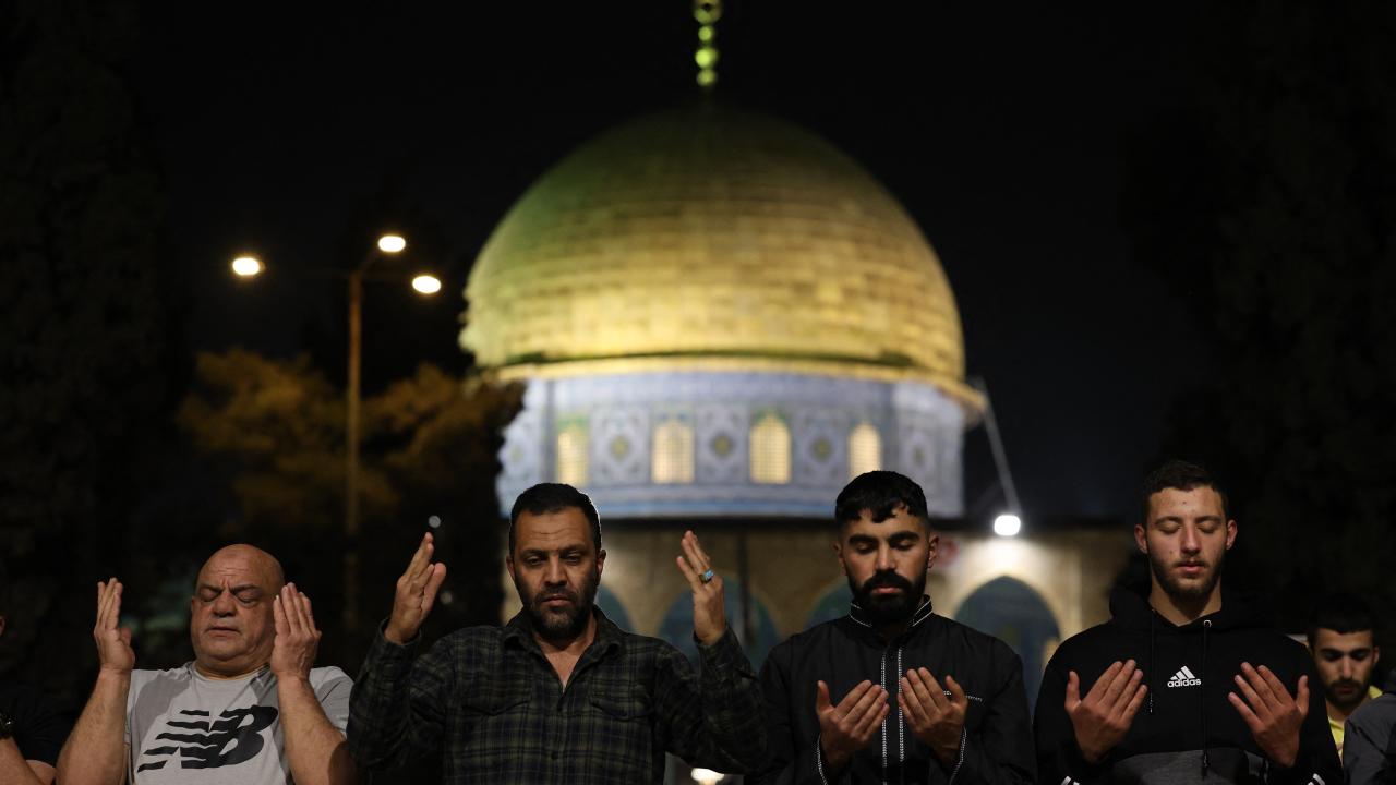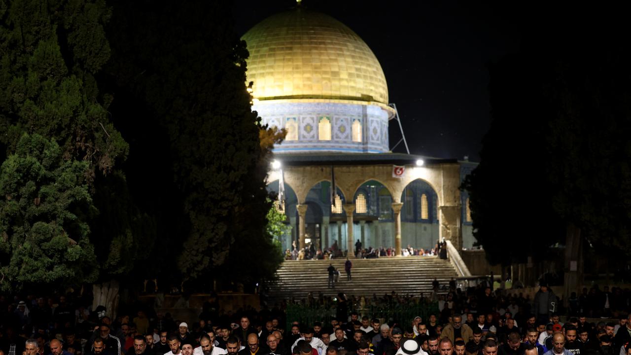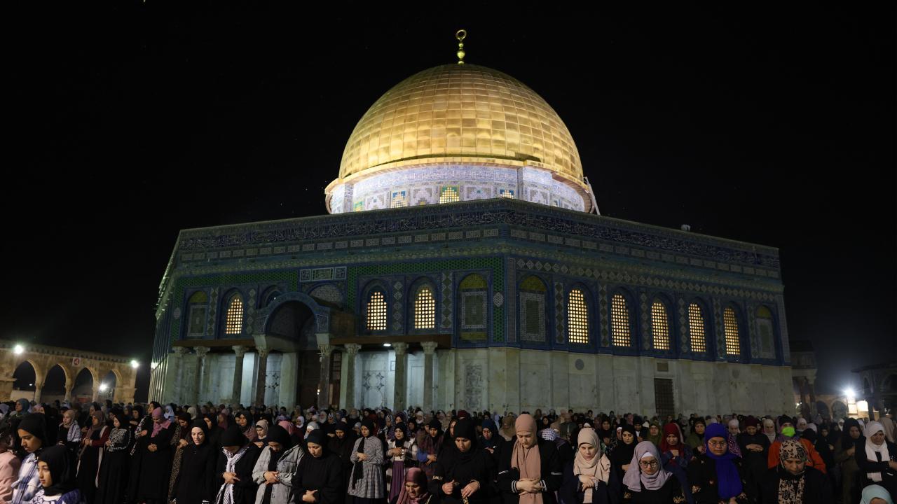 On binlerce Müslüman teravih namazını Mescid-i Aksa'nın avlusunda kıldı
