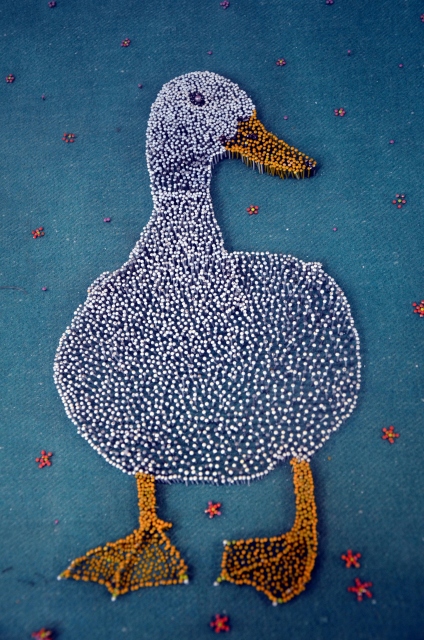 Muğla'nın Bodrum ilçesinde yaşayan ve resimlerini 40 bin ile 80 bin arasında toplu iğne kullanarak yapan emekli hesap uzmanı Tuncay Yurtsever, bir resmi 2-3 ay arasında tamamlayabiliyor. Bir resmi tamamlamak için 2 ile 3 ay arasında çalışan ve bugüne kadar 70'e yakın eser üreten Yurtsever, resimlerini kendisine ait bir iş yerinde sergileyerek yerli ve yabancı turistlerin görmesini sağlıyor.