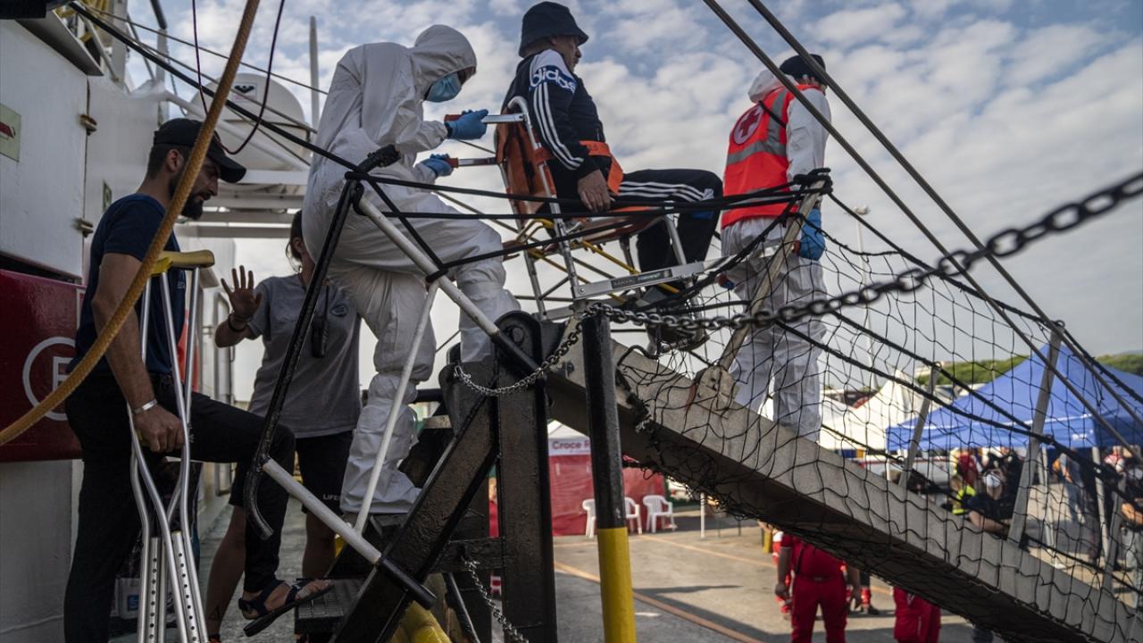Açık denizden kurtarılan göçmenler, İtalya`nın Carrara limanındaki kurtarma bölgesinde karaya çıkarılacak.