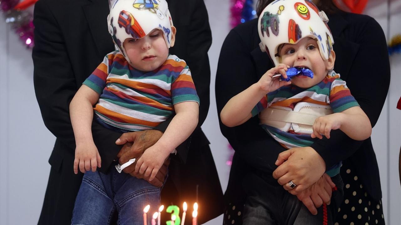 Üç yıl önce kafaları yapışık dünyaya gelen ve Cumhurbaşkanı Recep Tayyip Erdoğan ile eşi Emine Erdoğan'ın himayesinde Londra'da yapılan operasyonla ayrılan siyam ikizleri, 3'üncü yaş günlerini kutladı.