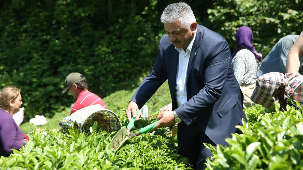 Türkiye Ziraat Odaları Birliği (TZOB) Yönetim Kurulu Üyesi Arslan Soydan, ilçenin Ortatepe Mahallesi`nde sürdürülen çay hasadını takip etti.