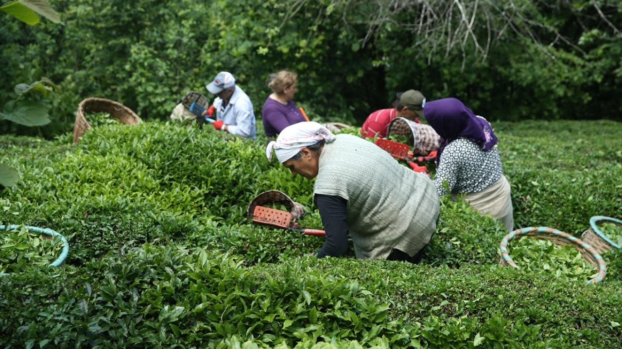 Sabah erken saatlerde çay bahçelerine giren ve hasadı imece ve yevmiye usulüyle gerçekleştiren üreticiler, topladıkları ürünü gün sonunda ÇAYKUR`a satıyor.